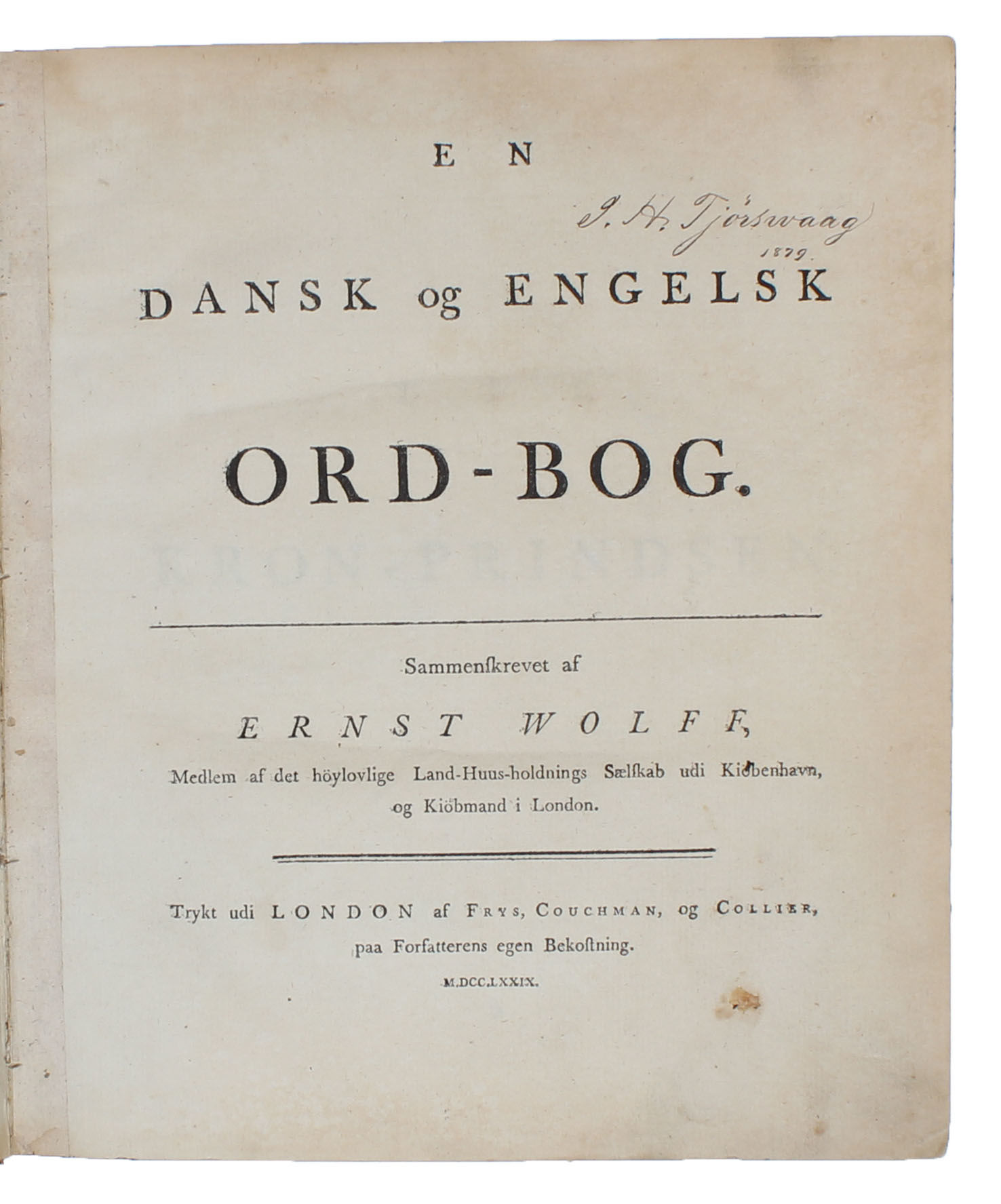 En Dansk og Engelsk Ord-Bog. Sammenskrevet af Ernst Wolff.