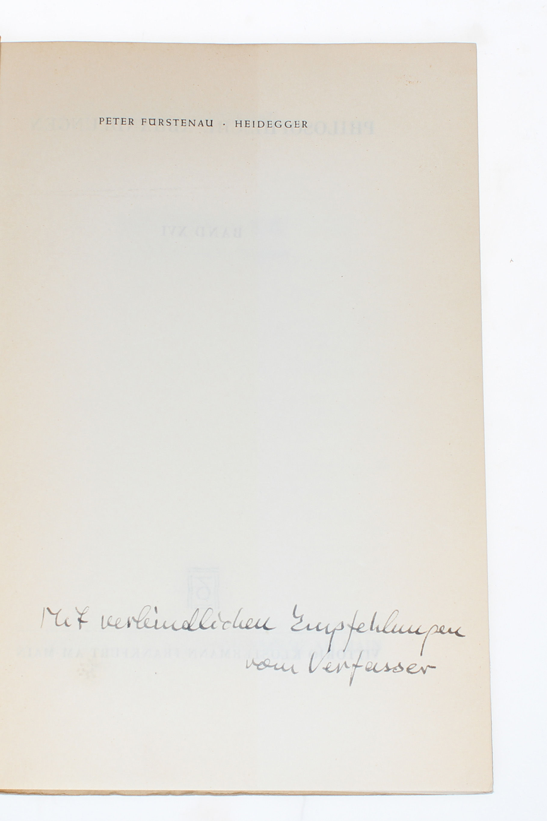 First edition, presentation-copy, of this early important work on the difference in thought between the Heidegger of "Sein und Zeit" and the later Heidegger, of great importnace in the Heidegger-reception.
