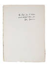 Kjøbenhavn, C. A. Reitzel, 1838. 8vo. X, (2), 79 pp. Magnificently bound for Kierkegaard himself in a patterned silver cloth binding with green leaves. All edges gilt. Printed on vellum-paper. The copy is noticeably larger than other copies of the book. Old owner’s inscription to inside of front board and small ex libris (Theodor Find) to the green front free end-paper. First edition, Kierkegaard’s own copy (from his own book collection, sold after his death), splendidly bound for himself, of his first work, which sews the seeds of his future career and initiates his philosophical production. It is in this famous review of Hans Christian Andersen as an author of novels, with a particular focus on his Only a Fiddler that Kierkegaard – the then 25 year-old theology student known only in a small academic circle, for his wit and sharp intelligence – puts forth his devastating criticism of Hans Christian Andersen – then 33 years old and already widely famous, Denmark’s other national hero and world-famous fairy tale-author. Even though the book is written as a polemic review, we already here witness Kierkegaard’s introduction of his emphasis on authentic individual existence which will continue throughout his entire production; as thus, From the Papers of one Still Living serves as a highly important introduction to Kierkegaard’s philosophical-ethical production. Kierkegaard points out that Hans Christian Andersen has not yet found himself and therefore cannot be a good author. This emphasis on authenticity and on the necessary first stage of the epic becomes an introduction to Kierkegaard’s famous theory of stages that he develops in his later works. He rejects the notion that environment is decisive in determining the fate of genius – the genius is a shaping subject, not a passive one formed by circumstances. Not one that needs to be nurtured and sheltered in order not to perish. The work was originally meant to be published as an article in the literary periodical Perseus, of which Johan Ludvig Heiberg was the editor. But the article grew too extensive, and the intended columns in the periodical were given to H.L. Martensen instead. Martensen’s article took up 70 pages and was about the idea of Faust, which vexed Kierkegaard, who had wanted to write about that subject himself. A contemporary note to the front free end-paper of the present copy states that it belonged to Kierkegaard himself and that it was bought at the auction of his books. The auction-protocol lists two copies of the work, both elaborately bound and with gilt edges (2957-2057a). Only a few months after Kierkegaard died (11th of November 1855), at the beginning of April 1856, his books were put up for sale. The sale was an event which created stir among scholars all over Denmark, and the event drew large crowds. Everyone wanted a piece of the recently deceased legend, and bidding was lively. The average price for the single items was nearly a rix-dollar a very high price for that time. As the old Herman Lynge wrote in a letter on the 22nd of May (The Royal Library, Recent Letters, D.), to the famous collector F.S. Bang, “At the sale of Dr. Søren Kierkegaard’s books everything went at very high prices, especially his own works, which brought 2 or 3 times the published prices”.” (Rohde Auction Catalogue, p. LVIJ). Many authors, philosophers, and scholars were present in the auction room, which was completely full, as was the Royal Library, who bought ca 80 lots. “Many of the books, not only his own, were paid for with much higher prices than in the book shops” (In Morgenposten no. 99, 30. April 1856, written by “P.”, translated from Danish). "Some books were bought by libraries where they still are today, others were bought by private people, who sometimes wrote their names in the front of the books and thus, indirectly, stated that they came from Kierkegaard’s book collection… The edition (of the auction catalogue, 1967) registers all books from Kierkegaard’s book collection that it has hitherto been possible to identify – either in public or in private ownership… All in all, nearly a couple of hundred volumes – i.e. ca. 10 % – of the Kierkegaardian book collection is said to be rediscovered…" (Rohde). Thus, today, books from Kierkegaard’s library are of the utmost scarcity. Only very few are still possible to acquire, and they hardly ever appear on the market. Himmelstrup 6