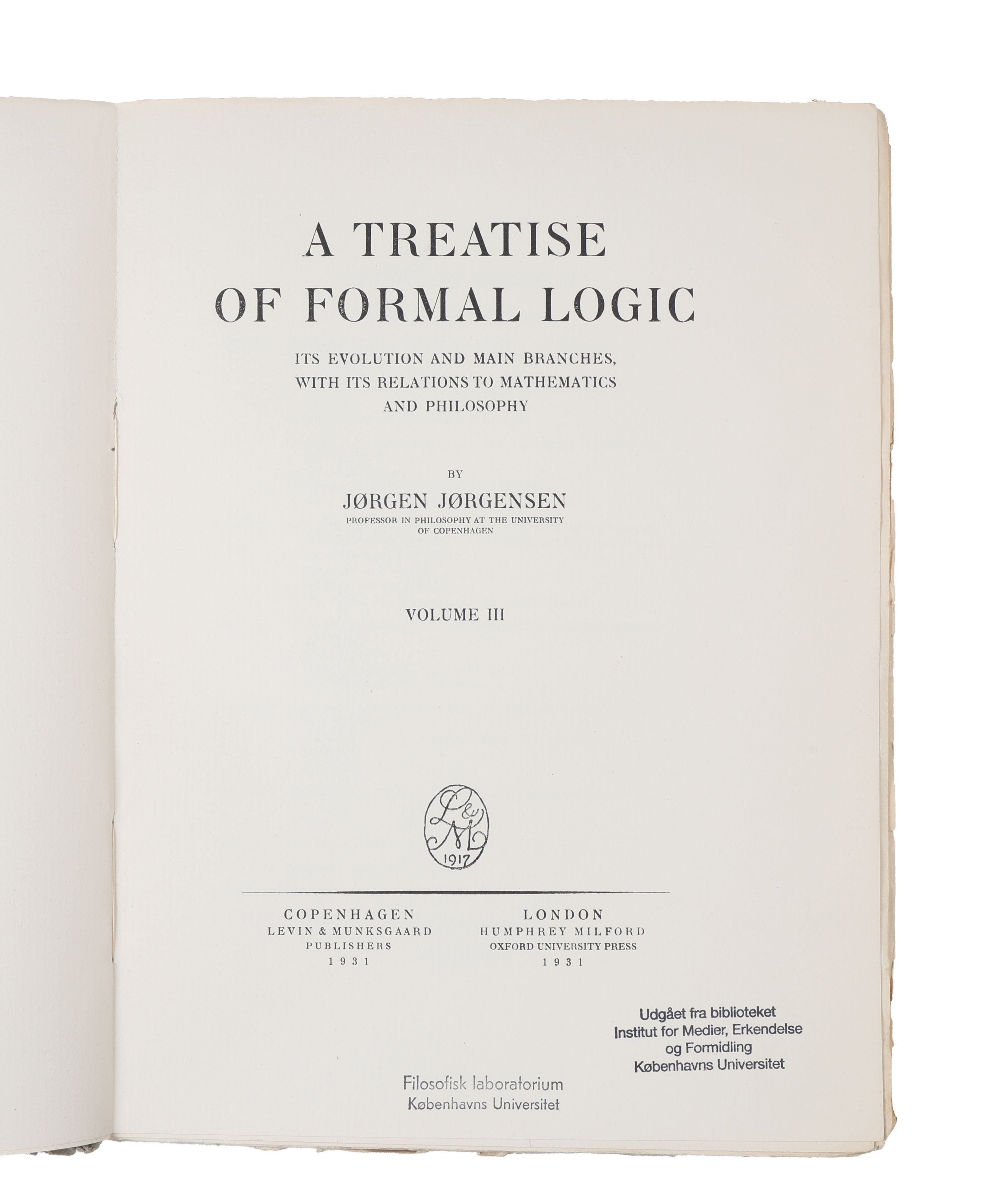 A Treatise of Formal Logic. Its Evolution and main Branches with its Relations to Mathematics and Philosophy. 3 Vols.