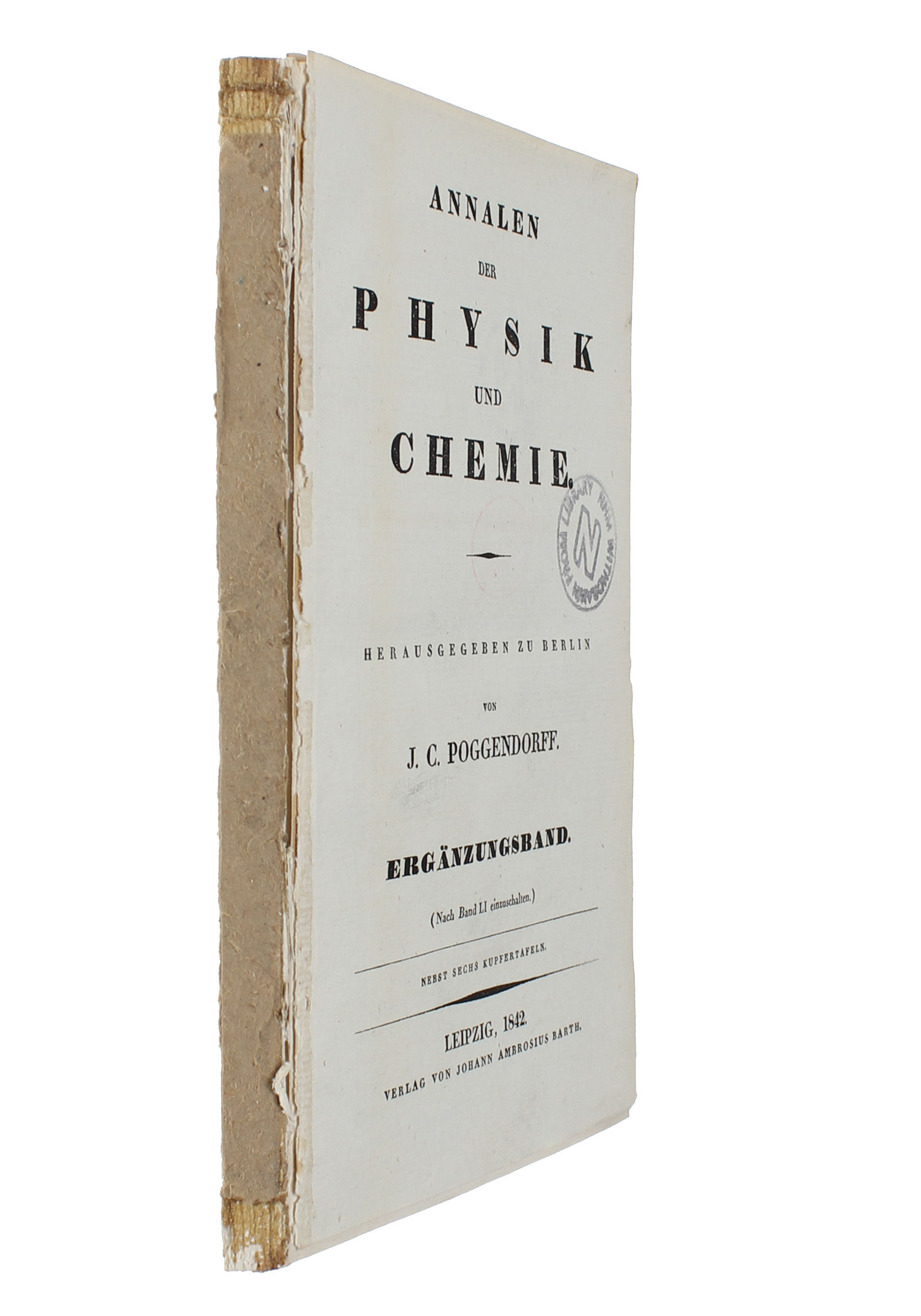 (Leipzig, Johann Ambrosius Barth, 1842). No wrappers. In: In "Annalen der Physik und Chemie. Hrsg. von J.C. Poggendorff", Ergänzungsband (Nach Bd. LI einzuschalten), Stück 1. With titlepage to the volume (Erg.-Bd.). Pp. 1-192 a. 3 plates. (Entire issue offered). Wheatstones paper: pp. 1-48. Brownspots to inner margin on the first page, otherwise clean. Stamp to titlepage and verso of plates.