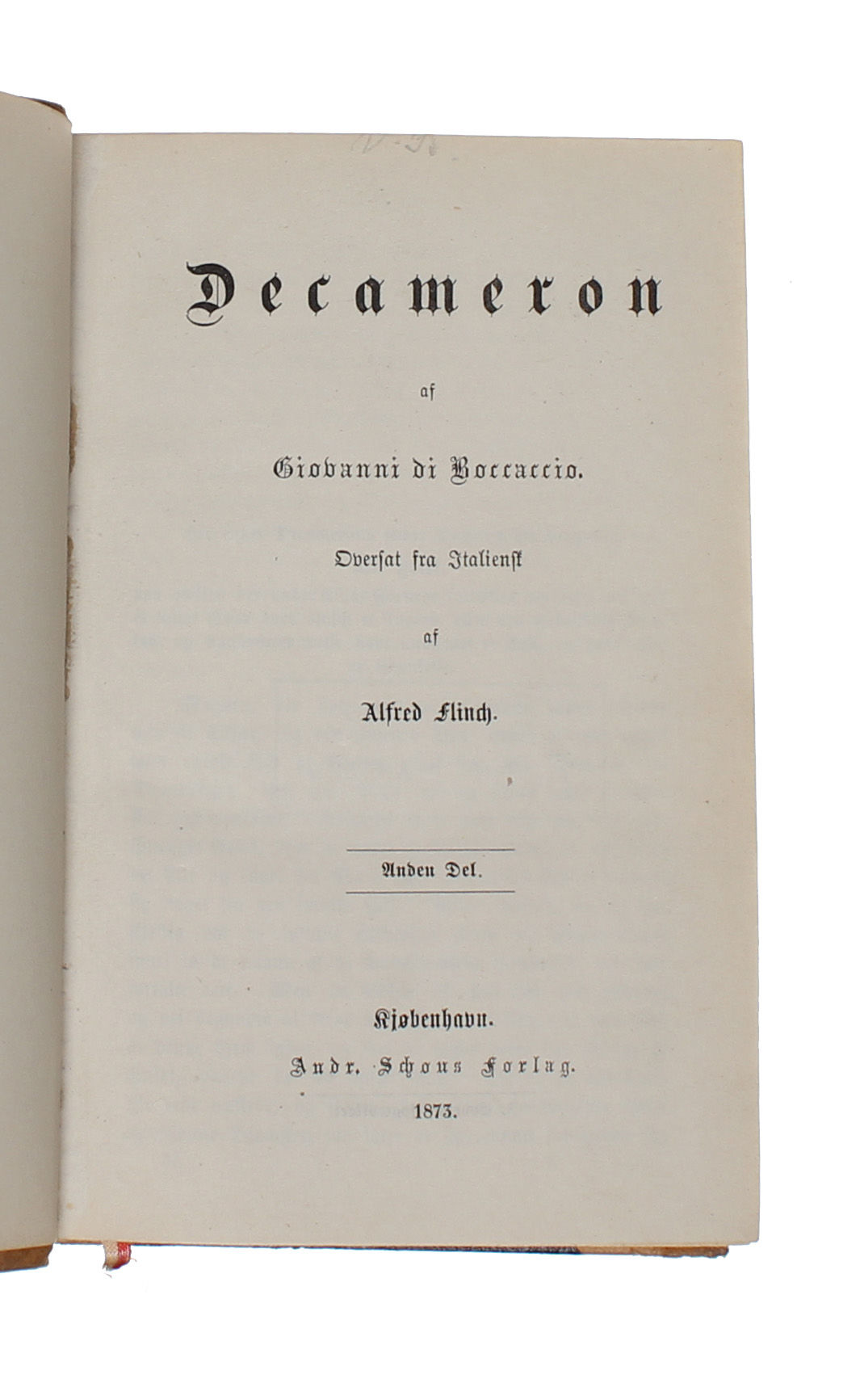 Decameron. Oversat fra Italiensk af Alfred Flinch. 1.-(2.) Del. 2 Bd.
