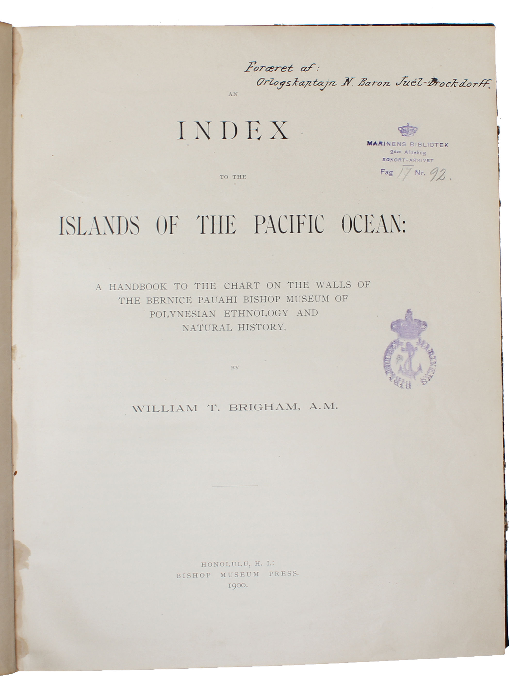 Honolulu, Bishop Museum Press, 1900. 4to. Contemp. hcloth. Gilt lettering on spine. Stamps and inscription on title-page. 170,(2)