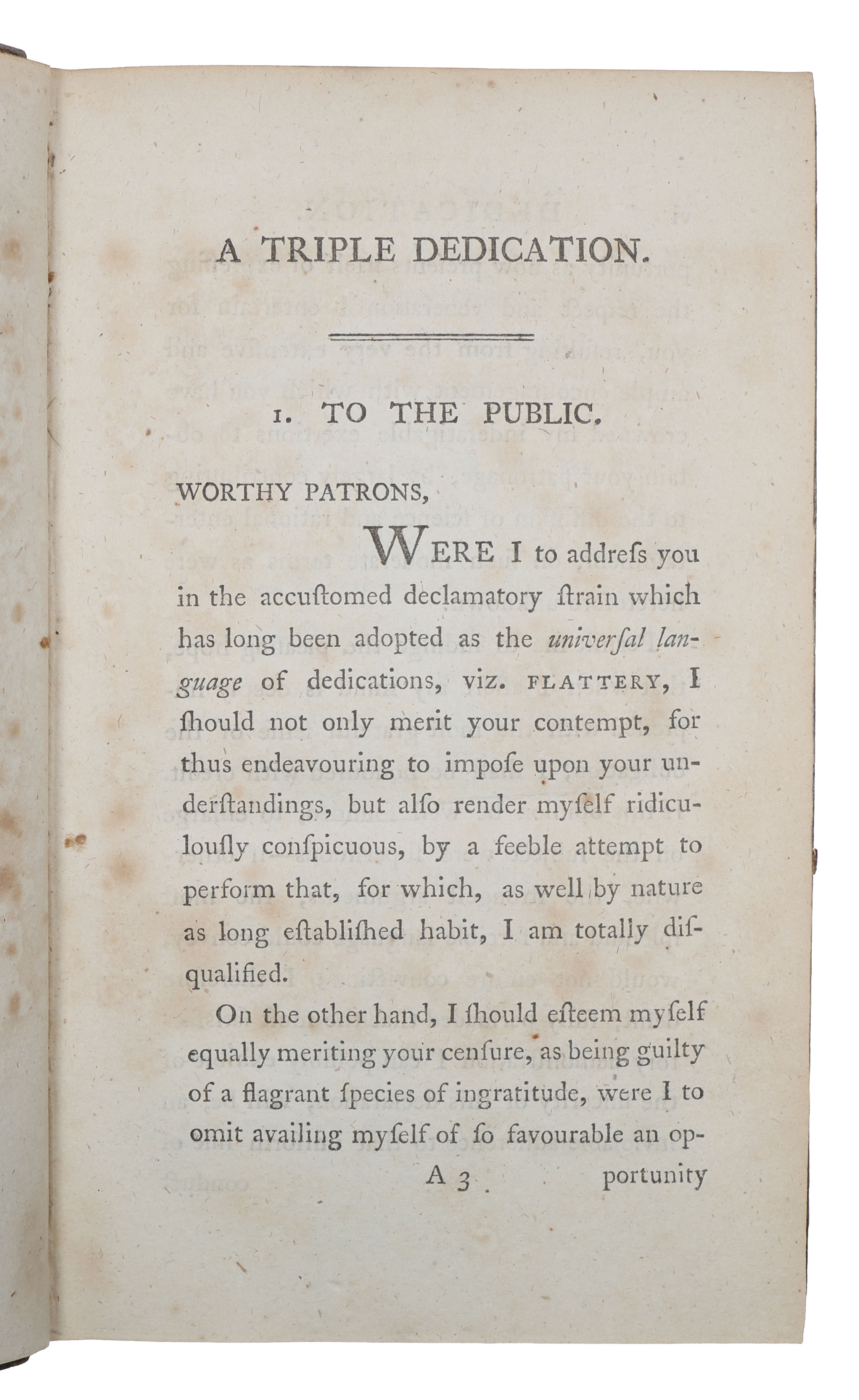 London, Printed for and sold for the Author. 1791. Contemp. Gilt spine, gilt lettering. Gilding faint. Small cracks to fronthinge. Engraved portrait. XXXII,344 pp. Scattered brownspots and some offsetting from portrait.