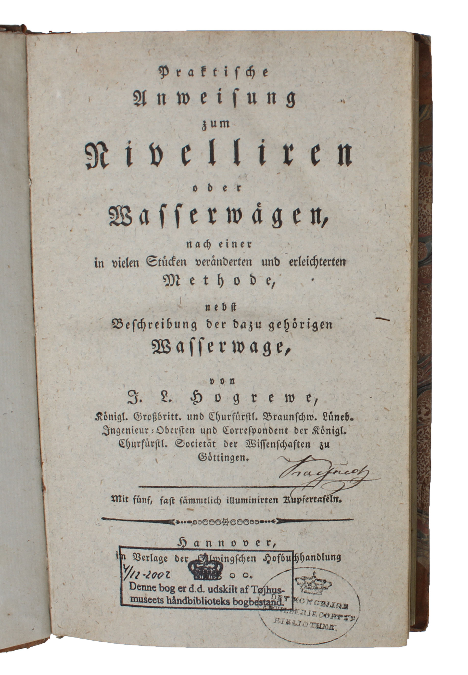 Praktische Anleitung zum Nivelliren oder Wasserwägen, nach einer in vielen Stücken veränderten und erleichterten Methode, nebst Beschreibung der dazu gehörigen Wasserwage. Mit fünf, fast sämmtlich illuminirten Kupfertafeln.