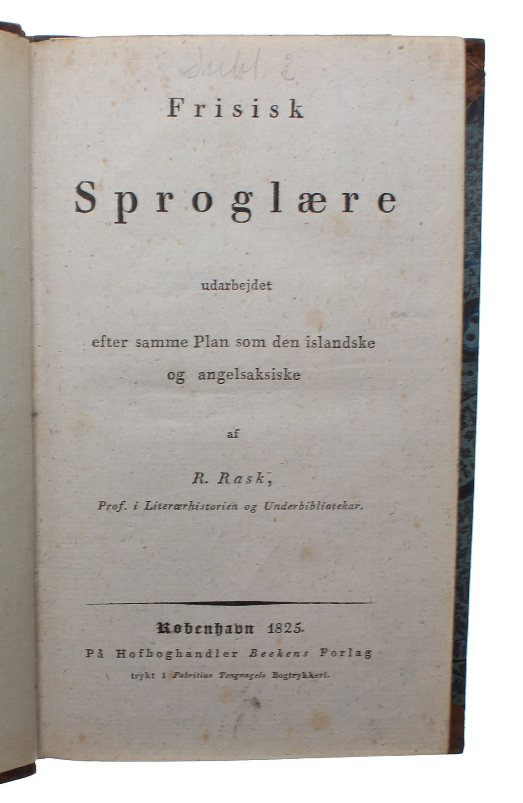 First edition of Rask's Frisian grammar. Hjelmslev I, 63.