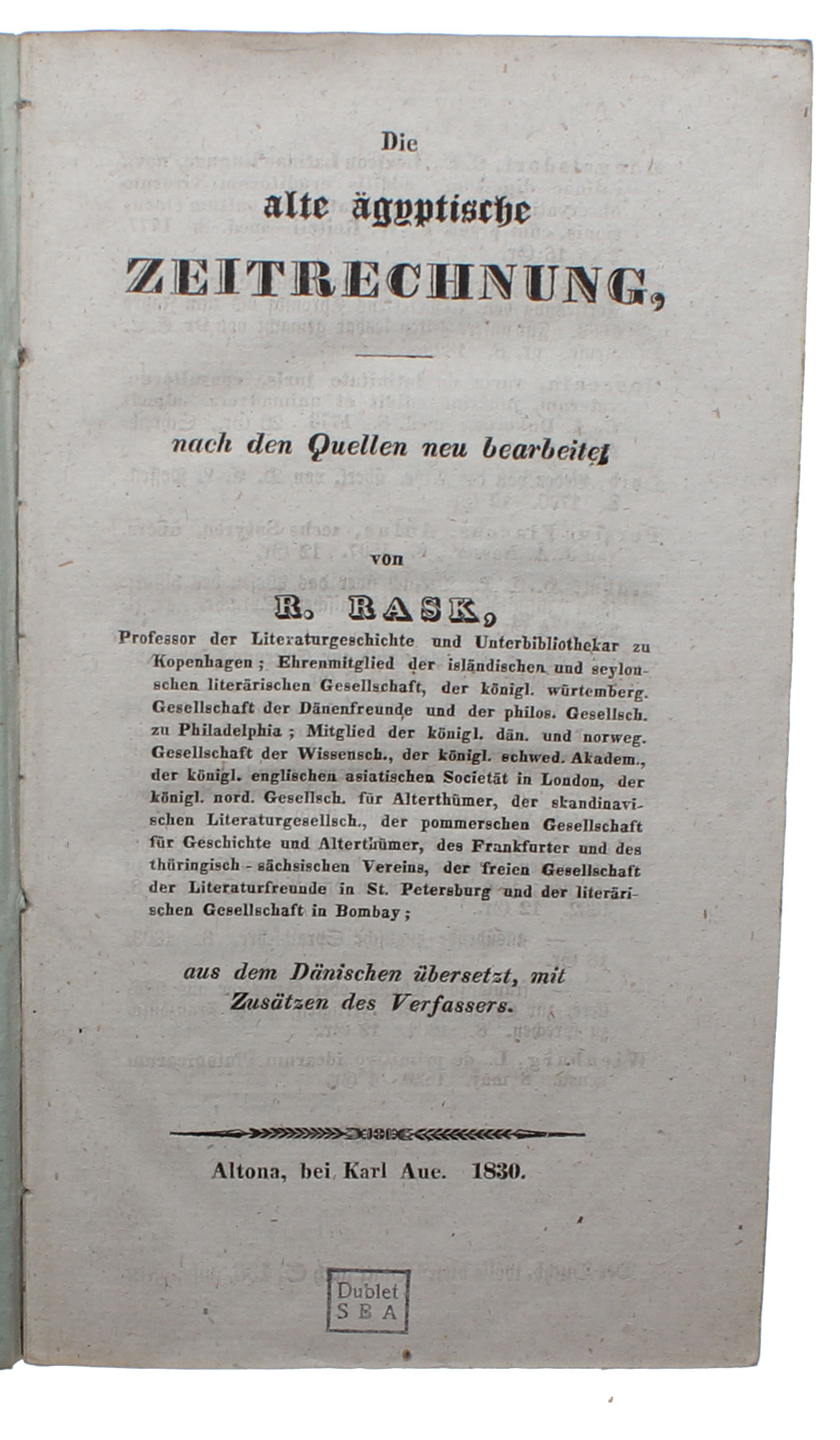 Die alte ägyptische Zeitrechnung, nach den Quellen neu bearbeitet. Aus dem Dänischen übersetzt, mit Zusätzen des Verfassers.