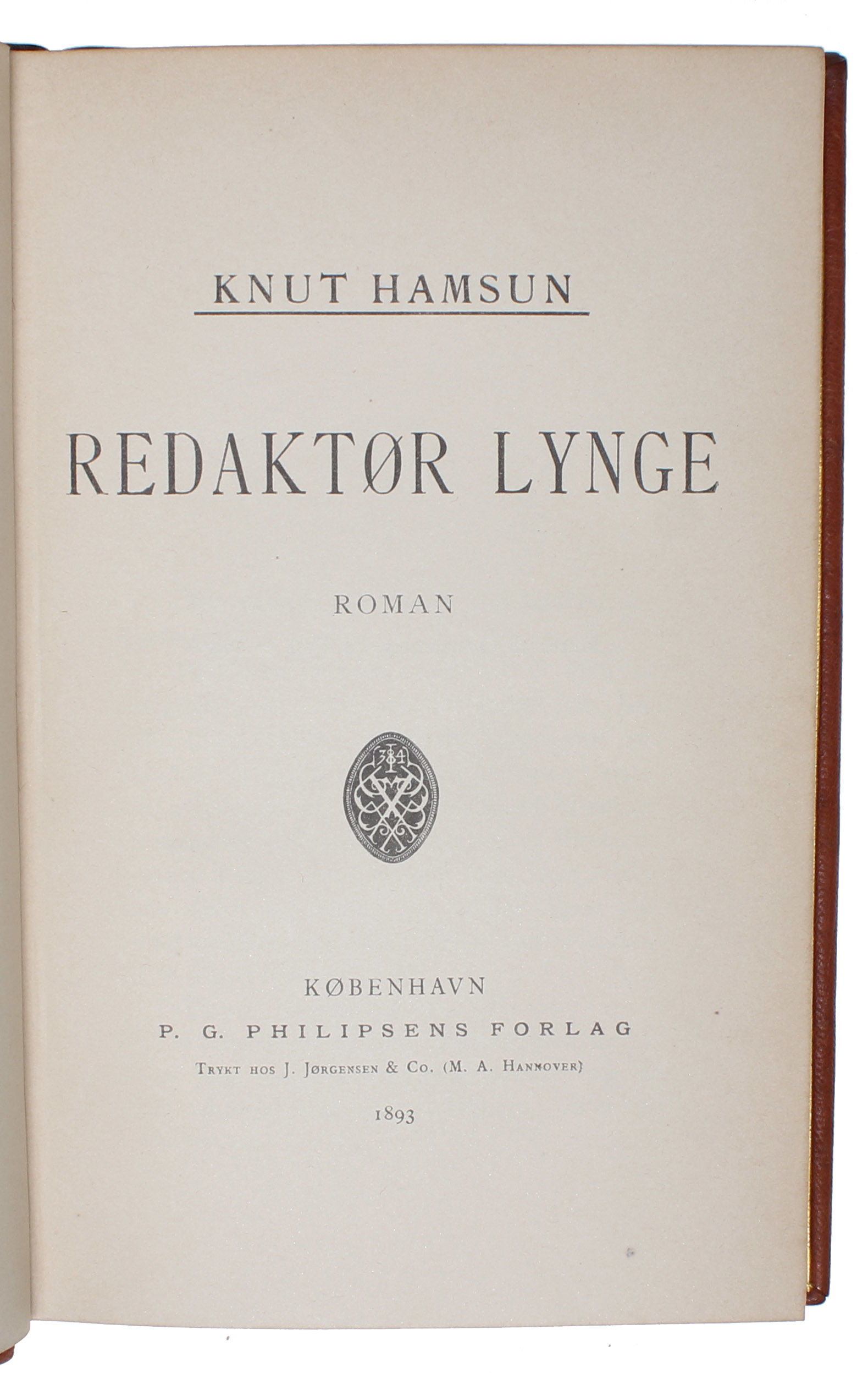 København, Philipsen, 1893. Indbundet i et simpelt helbind af rødlig-orange oaseged med fire ophøjede bind og forgyldt titel på ryg. Enkel streg-forgyldning på inderside af permer. Forsatse af håndtrykt bøttepapir. (Petersen & Petersen). Ryg falmet og bind en lille smule nusset. Indvendig helt ren.