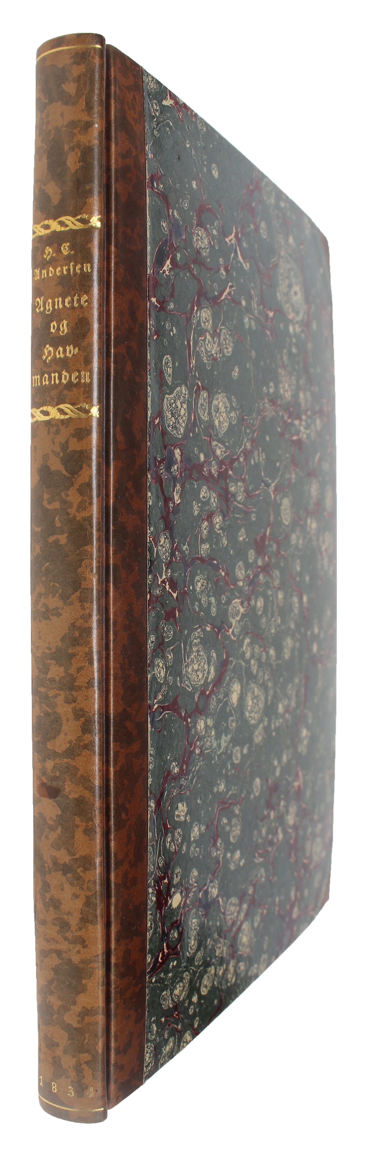 Kjøbenhavn, C. A. Reitzel, 1838. 8vo. X, (2), 79 pp. Lovely contemporary brown half calf with marbled paper over boards. Double gilt lines and gilt lettering to spine. Foot of spine with the gilt initials of H.P. Kierkegaard. A few brown spots to the margin of the first eight leaves, otherwise remarkably clean. An excellent, beautifully preserved copy. With the ownership signature of H.P. Kierkegaard to front fly-leaf. An exquisite copy of the first edition of Kierkegaard's first work, which has belonged to Kierkegaard's disabled cousin, who was a great source of inspiration to Kierkegaard. The relationship between the two cousins was very touching, and they both benefitted greatly from the other. Søren drew inspiration from his cousin, who was lame and unable to walk, and he cared a great deal for him. Hans Peter was one of the very few who had a standing invitation to visit Søren. He felt that his cousin might lead a truer and more meaningful life than most other people, who do not face the same hardships. Hans Peter, on the other hand, was greatly comforted by his famous cousin and his edifying writings. Søren helped him feel that, in spite of his hardships, his life was not wasted – he helped him believe in God. All copies of Kierkegaard's works belonging to his cousin denote a special significance, but it is especially lovely to find H.P. Kierkegaard's copy of his cousin's very first book. Kierkegaard's famous first work sews the seeds of his future career and initiates his philosophical production. It is in this famous review of Hans Christian Andersen as an author of novels, with a particular focus on his Only a Fiddler that Kierkegaard – the then 25 year-old theology student known only in a small academic circle, for his wit and sharp intelligence – puts forth his devastating criticism of Hans Christian Andersen – then 33 years old and already widely famous, Denmark's other national hero and world-famous fairy tale-author. Even though the book is written as a polemic review, we already here witness Kierkegaard's introduction of his emphasis on authentic individual existence will continue throughout his entire production; as thus, From the Papers of one Still Living serves as a highly important introduction to Kierkegaard's philosophical-ethical production. Kierkegaard points out that Hans Christian Andersen has not yet found himself and therefore cannot be a good author. This emphasis on authenticity and on the necessary first stage of the epic becomes an introduction to Kierkegaard's famous theory of stages that he develops in his later works. He rejects the notion that environment is decisive in determining the fate of genius – the genius is a shaping subject, not a passive one formed by circumstances. Not one that needs to be nurtured and sheltered in order not to perish. The work was originally meant to be published as an article in the literary periodical Perseus, of which Johan Ludvig Heiberg was the editor. But the article grew too extensive, and the intended columns in the periodical were given to H.L. Martensen instead. Martensen's article took up 70 pages and was about the idea of Faust, which vexed Kierkegaard, who had wanted to write about that subject himself. Kierkegaard, Hans Peter (1815-62) is always referred to as Kierkegaard's cousin, also by Kierkegaard himself, but if one is to be precise, he was Søren's half-cousin. H.P. was the son of M.P. Kierkegaard's (Søren's father) cousin, M.A. Kierkegaard. H.P. was one of the few people Kierkegaard was personally very close to. As Søren writes in a letter to H.P. (SKS letter no. 27) "you are one of the exceptions". He cared a great deal for his cousin, who was disabled. He was lame, completely paralyzed on one side of the body, and unable to walk. Intellectually, however, he was gifted, and the two cousins grew very close. Søren saw in him a purity that he did not see in other people, an ability to lead a truer and more meaningful life than others, who did not have to suffer in the same way. Søren was also a great comfort to H.P, who read the works of his famous cousin with enthusiasm. He probably owned every single work Kierkegaard wrote, and he drew great comfort from several of them. As Brøchner recalls in his recollections about Kierkegaard (Erindringer om Søren Kierkegaard – no. 43), H.P. "read his cousin's writings with the greatest of interest, occasionally visited him in his home, and drew much spiritual awakening from these visits." Brøchner continues to recall how he once told Kierkegaard what a great impression one of his works, Opbyggelige Taler i forskjellig Aand, had made upon H.P. In the confessional discourse, Søren portrays a person, who due to his bodily disposition is unable to practice anything physically or outwardly, and goes on to beautifully describe how this person too is subject to the same ethical demands as everyone else and what particular form this life-assignment takes on for him. To this, Søren replied "yes! To him, that work is a blessing". And so it was. Reading his cousin's upbuilding works provided the disabled Hans Peter with the power to overpower gloomy thoughts about his life having no meaning. Søren gave him, not only through his writings, but also through his meetings and conversations with him, the feeling of being as important as everyone else, as those who were physically blessed. There is no doubt that Kierkegaard drew inspiration from his admirable cousin, who had to overcome so much. And there is no doubt that H.P. was close to Søren's heart. Apart from Boeson, H.P. was the only person who had a standing invitation. He writes how he admires H.P., who, reconciled with his fate, with patience and devotion solves a task that is just as great as the one everyone else has to solve, whether they do big business, build houses, write great books, etc. – "when all is heard, everything, after all, mainly comes down to fervor – and when all is forgott