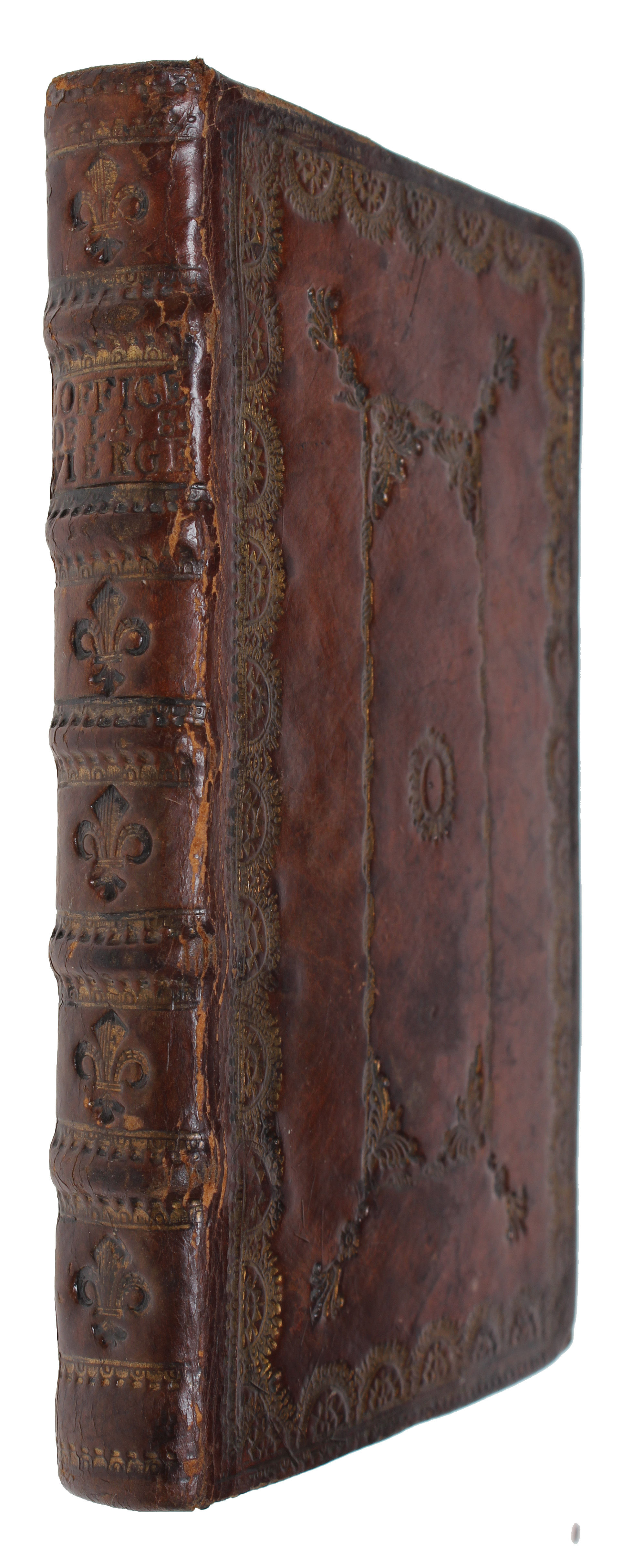 Paris, Jean Boudot, 1699. 12mo. Bound in a beautiful contemporary full calf binding with gilt spine and boards. Five raised bands and gilt title label to spine. Gilt fleurs de lis to compartments of spine. Boards with beautiful gilt ornamental borders inside which another gilt border worth corner-ornamentation and a gilt centre-ornamentation. All edges gilt. Writings in ink to the first and last leaves, otherwise internally clean. (2), 252, (4) pp.