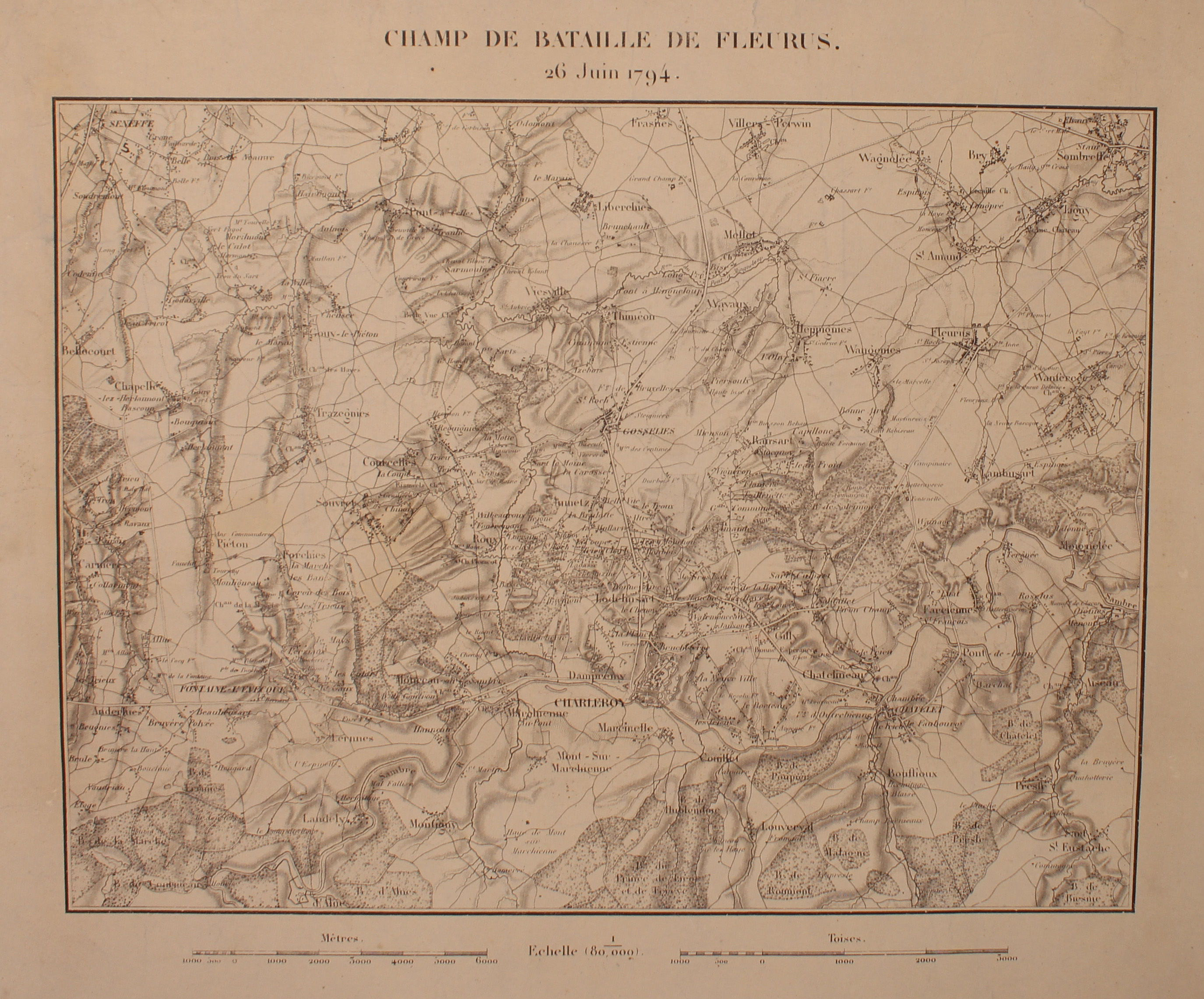 Champ de Bataille de Fleurus, 26 Juin, 1794. Echelle, 1: 80,000.
