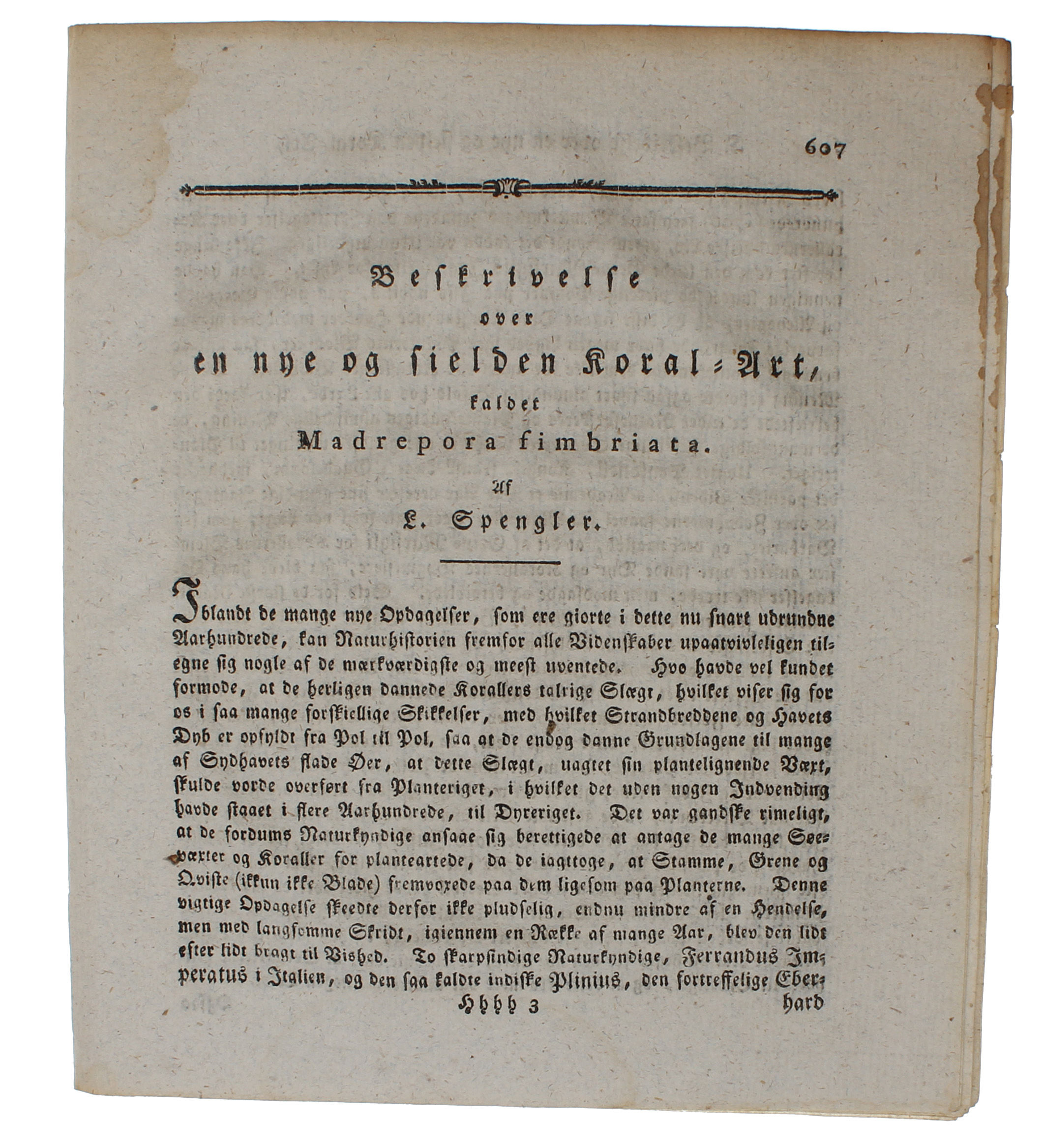 Beskrivelse over en nye og sielden Koral-Art, kaldet Madrepora fimbriata. (In "Nye Samling af det Kongelige Danske Videnskabers Selskabs Skrifter 5").