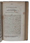 First appearance of one of the classic papers in which Dutrochet investigated his discovery of osmosis. "Dutrochet’s research on the phenomena of osmosis and diffusion (or endosmosis and exosmosis, as he not very aptly called them) and their applications to the study of previously unexplained vital phenomena attracted general attention. His chief observation was that certain organic membranes allow the passage of water but stop the molecules dissolved in it, so that between two solutions of different concentration, separated by such a membrane, water passes from the less concentrated to the more concentrated, even against gravity. Although the conditions of Dutrochet’s experiments were rather simple and did not allow of great accuracy, he made the first important steps toward the study of osmosis and diffusion."(DSB). Garrison & Morton: 670.