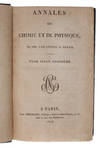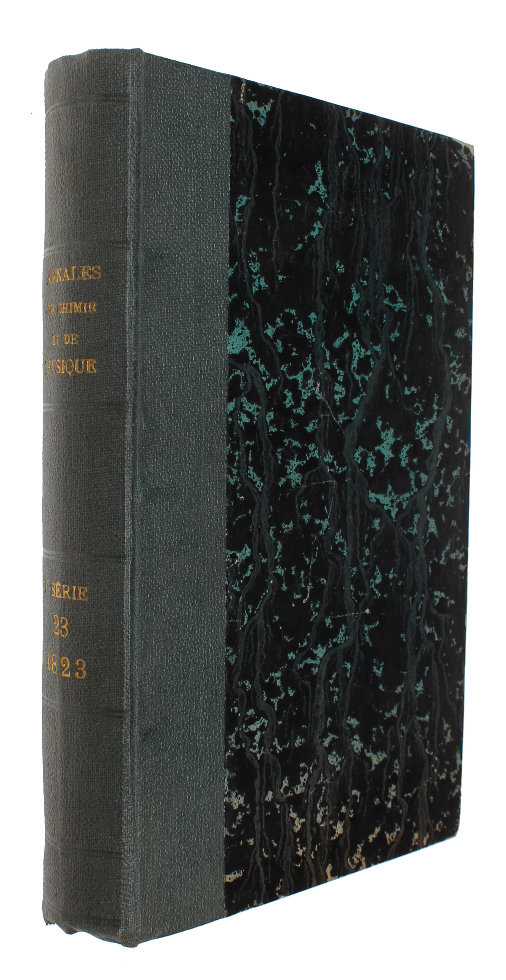 Paris, Crochard, 1823. 8vo. In a bit later half cloth with gilt lettering to spine. In: "Annales de Chimie et de Physique, Par MM. Gay-Lussac et Arago.", tome 23. Entire volume offered. No institutional stamps. (Buch's paper: pp. 276-304). (Poisson's paper:) pp. 337-352. (The entire issue:) 448 pp. + 2 plates.