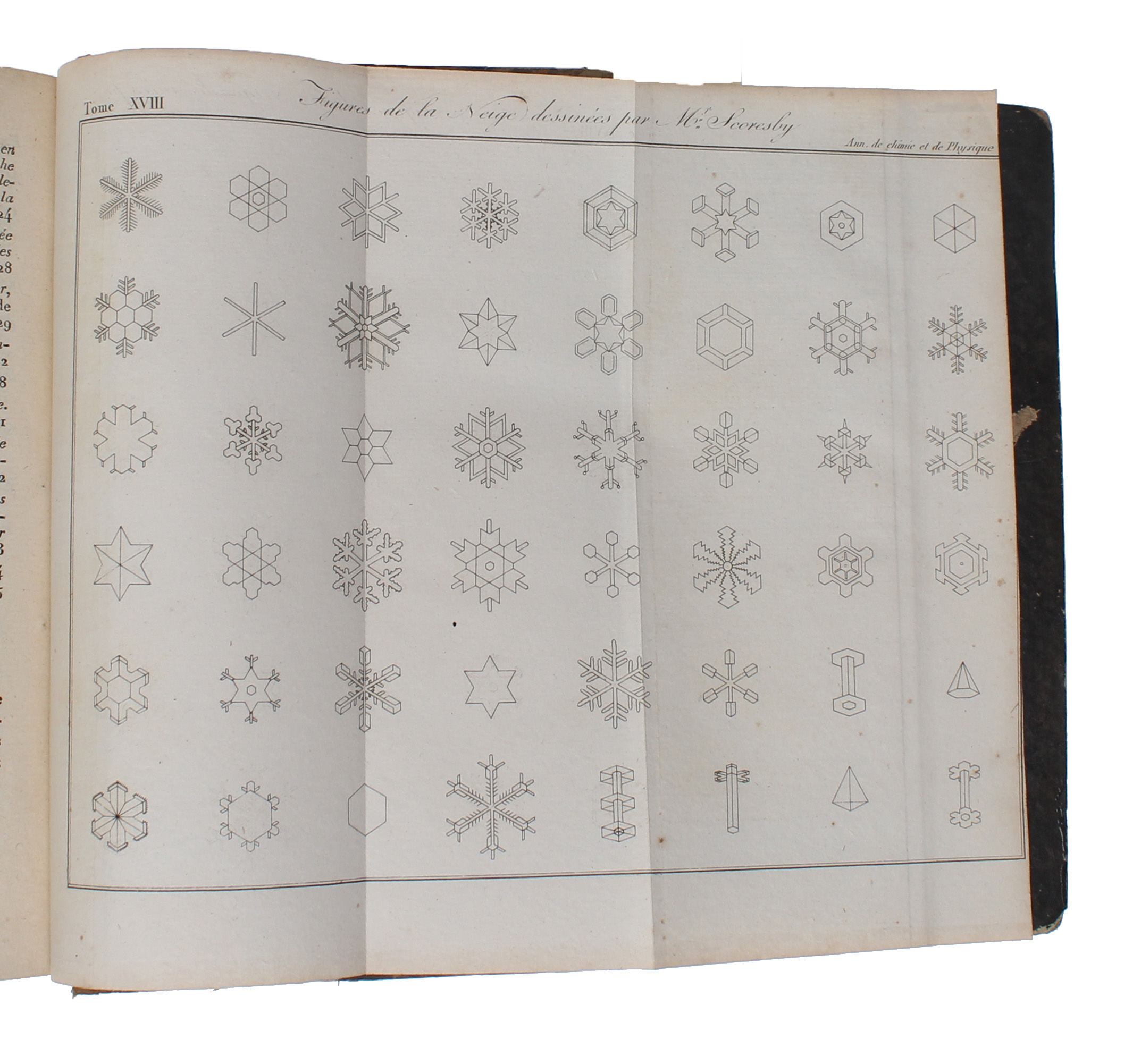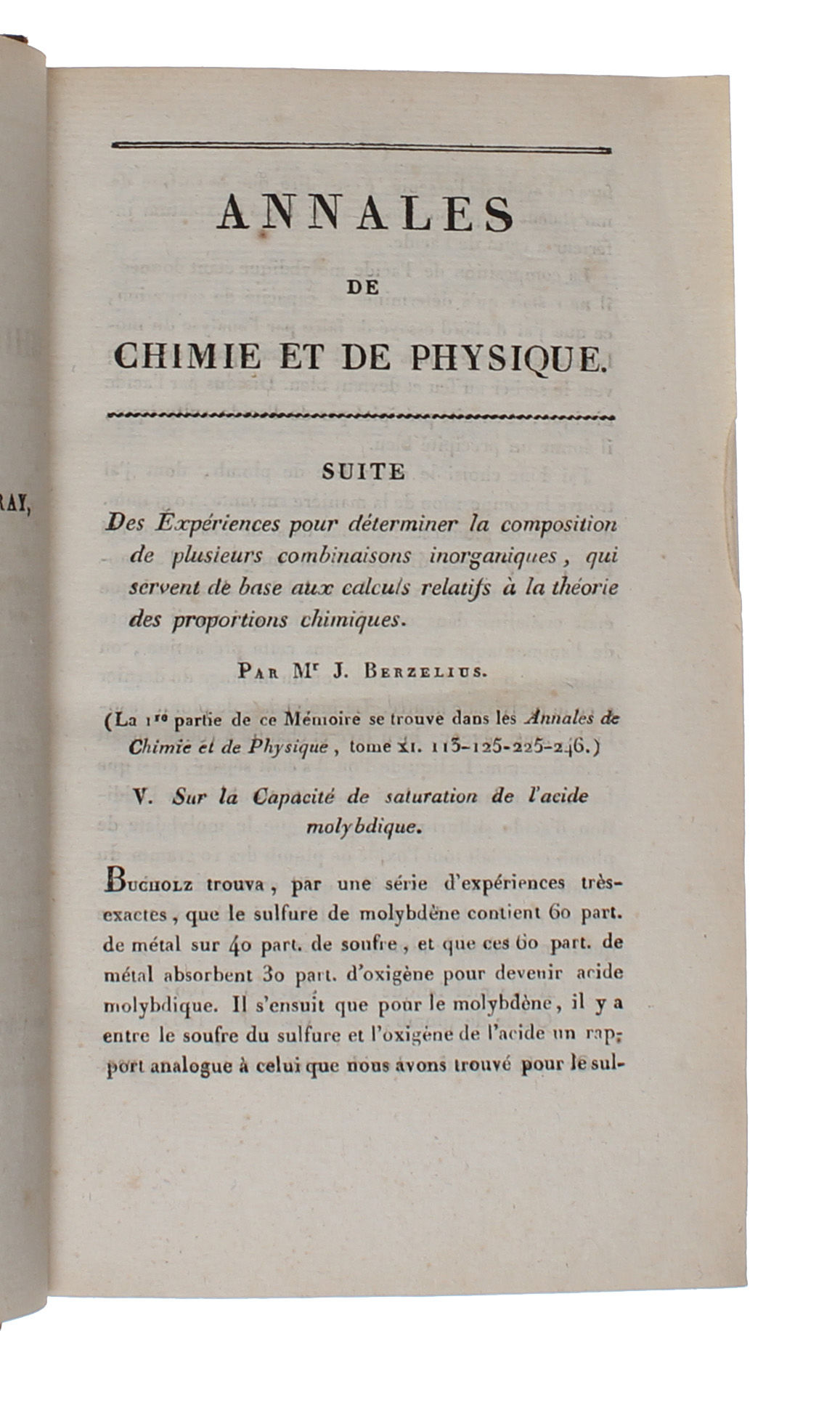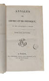 First French edition of Faraday's famous paper "On some new Electro-Magnetical Motion, and on the Theory of Magnetism. By Michael Faraday, Chemical Assistant in the Royal Institution. (1821)", recording one of the most influential discoveries in physics in the 19th Century, as Faraday here, as the very first, showed how to CONVERT THE ELECTRICAL AND MAGNETIC FORCES INTO CONTINUAL MECHANICAL MOVEMENT, thus creating the first electric motor, using the principle of electromagnetic rotation. In the first paper he introduced for the first time the concept of "LINE OF FORCE" and hereby deliniating "a picture of the universe as consisting of fields of various types, one that was more subtle, flexible, and useful than the purely mechanical picture of Galileo and Newton. The FIELD UNIVERSE was to be recognized with Maxwell half a century later and with Einstein, after an interval of another halfcentury."(Asimov)."Ever since Hans Christian Oersted's announcement of the discovery of electromagnetism in the summer of 1820, editors of scientific journals had been inundated with articles on the phenomenon. Theories to explain it had multiplied, and the net effect was confusion. Were all the effects reported real ? Did the theories fit the facts ? It was to answer these questions that Phillips turned to Faraday and asked him to review the experiments and theories of the past months and separate truth from fiction,...Faraday agreed to to undertake a short historical survey...His entusiasm was aroused in September 1821, when he turned to the investigation of the peculiar nature of the magnetic force created by an electrical current. Oersted had spoken of the "electrical conflict" surrounding the wiree and had noted that "this conflict performs circles".....Yet as he experimented he saw precisely what was happening. Using a small magnetic needle to map the pattern of magnetic force, he noted that oneof the poles of the needle turned in a circle as it was carried around the wire. He immediately realized that a single magnetic pole would rotate unceasingly around a current-carrying wire so long as the current flowed. He then set about devising an instrument to illustrate this effect. His paper "On some new Electro-Magnetical Motion, and on the Theory of Magnetism" appeared in the 21 October 1821 issue of the "Quarterly Journal of Science" (The paper offered in the first French edition). It records the first conversion of electrical into mechanical energy. It also contained the first notion of the line of force."(DSB IV, pp. 533).