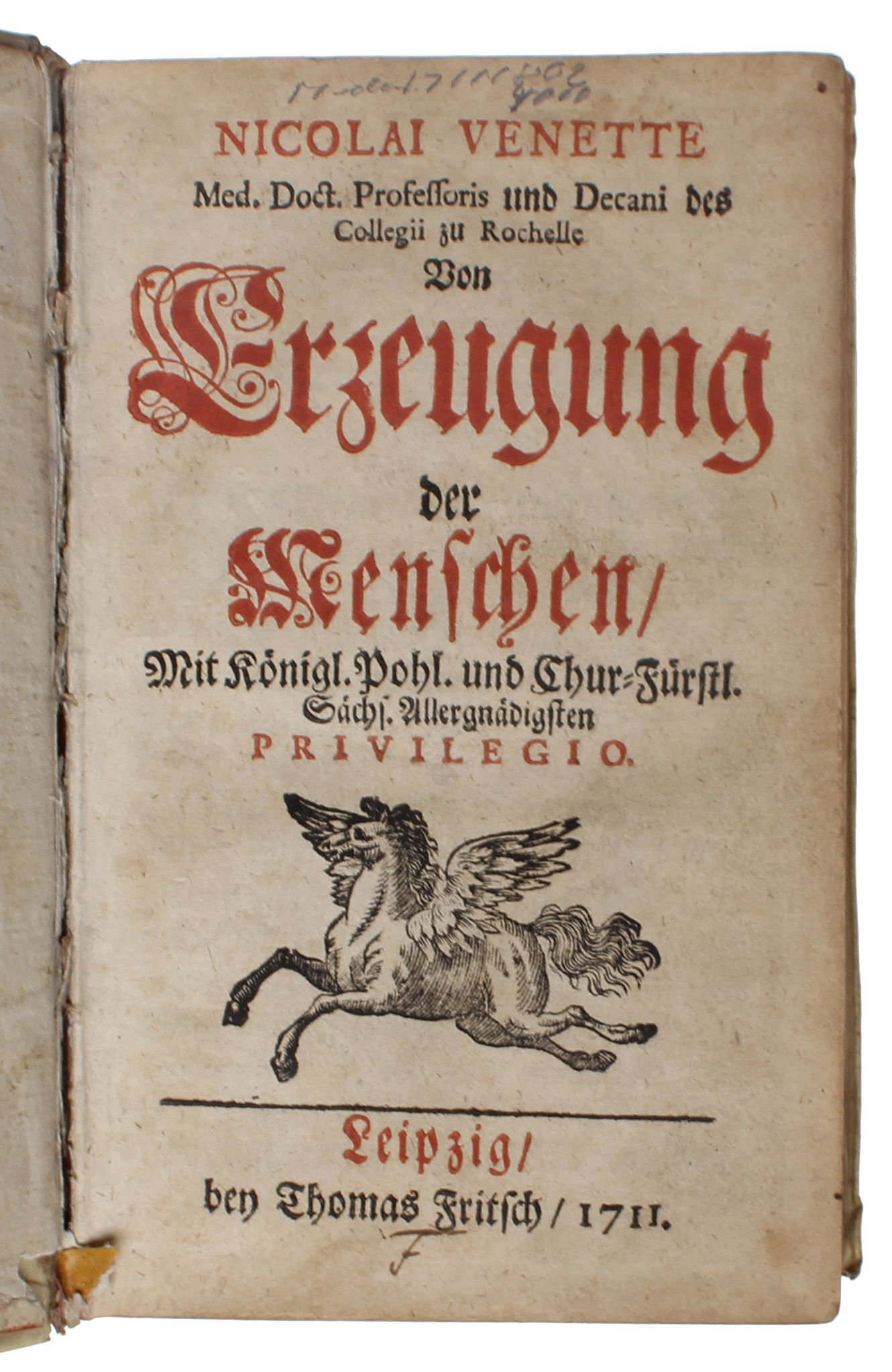 Originally published in Amsterdam in 1686 under title "Tableau de l'amour humain considéré dans l'état du mariage" (Table of human love considered in the state of marriage) and under the pseudonym Salocini Venetian (anagram of Nicolas Venette) is considered to be the first treatise on sexology in West. It proved to be a bestseller and was translated into English, Spanish, German and Dutch. There were 33 editions published sporadically until 1903.