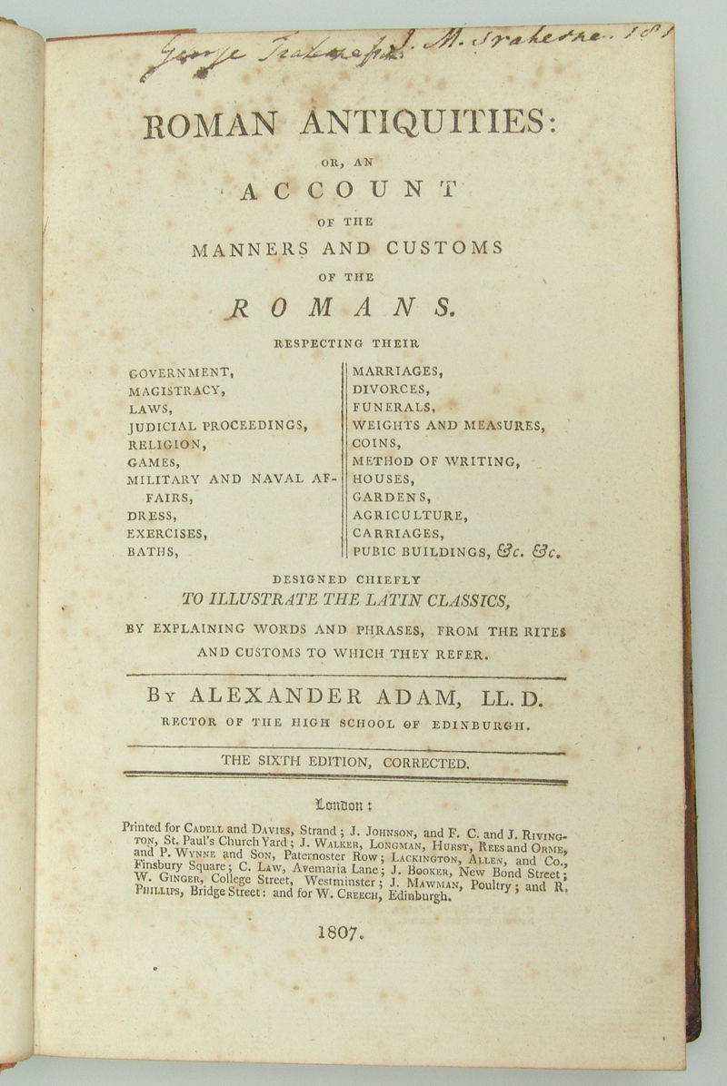 Roman Antiquities: or, Account of the Manners and Customs of the Romans. Respecting theit Goverment Magitracy etc. etc.