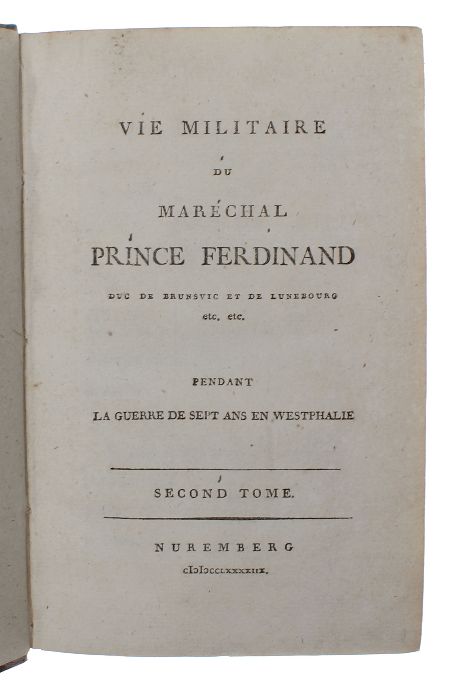 Vie Militaire du Maréchal Prince Ferdinand Duc de Brunsvic et de Lunebourg pendant la guerre de sept ans en Westphalie. 2 vols.