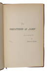 Kjøbenhavn, Reitzel, 1843. Small 8vo. 157 pp. Splendidly bound in beautiful patterned pink moiré-paper covered with red and green floriated gilt branches. Rebacked in nearly matching paper. Blue silk end-papers. All edges gilt. Printed on thick vellum-paper. A splendid copy with light edgewear and absolutely minimal brownspotting. Contemporary inscription to front fly-leaf stating that this is Kierkegaard’s own copy and that it was bought at the auction after him, April 1856 (presumably in the hand of Herman H.J. Lynge). Housed in a beautiful marbled paper box with red Morocco spine. Spine with gilt lines and gilt gothic lettering stating title, the pseudonymous author name and that this is Kierkegaard’s own copy printed on heavy vellum-paper. Kierkegaard’s own copy of Repetition, one of the two copies he had printed on special paper and specially bound, one for Regine, one for himself, with a correction in Kierkegaard’s hand. This is as close as one comes to the love story of Regine and Kierkegaard – this is Kierkegaard’s own copy that he kept himself, from the love-set of the two copies of Repetition he had made, where the other was for Regine. One of the two copies of the book that he had made on special paper and bound in this particularly beautiful and romantic binding with gilding and flowers. Kierkegaard had his eight pseudonymous works made like this, one for Regine, one for himself. So far, only four of these have surfaced, Regine’s copies of Repetition, Prefaces, and Either-Or (all three sold at auction in 2002), and Kierkegaard’s own copy of Either-Or (which is in the Danish Royal Library). The other copies are unregistered, and the whereabouts unknown. The present copy is presumably that described merely as “dainty w. gilt edges”, nr. 2125 from the auction catalogue, which Herman H.L. Lynge bought at the auction. The correction is to be found on p. 80, where “legede” (played) has been changed to “levede” (lived). See Pap. IV B99. REPETITION – not only the title of one of his most significant books, but also a key concept in the philosophy of Kierkegaard – was written during the same brief spell of feverish activity that also produced Fear and Trembling; the two books were even published on the same day. ”Say what you will, this question will play a very important role in modern philosophy, for repetition is a crucial expression for what “recollection” was to the Greeks. Just as they taught that all knowing is a recollecting, modern philosophy will teach that all life is a repetition.” (Repetition, p. 3 – translation by Hong), Kierkegaard states in the beginning of his treatise, anticipating the importance that his concept of Repetition is to have for modern philosophy. Written in the narrative form of an experimental novel centered on two stories that are internally linked, Kierkegaard lets us understand what Repetition could be and what it is in his philosophy. The first story portrays Repetition as something empty and trivial, whereas the second portrays it as an ethical category that is inextricably linked to religion. Repetition is that which makes it possible for man to become and to remain present in the present. Kierkegaard’s explanation of his key concept of Repetition is exhausted in the present work, but it also plays a significant rôle throughout his later works and is considered one of the key concepts in his philosophy. The work is centered around the story of a young man, who has fallen in love with an innocent young girl to whom he has become engaged. But, finding himself unable to consummate the love because of poetic stirrings inside himself, he tries to understand what is going on inside him and whether or not he should break off the engagement. The elderly Constantin Constantius, one of Kierkegaard’s numerous pseudonyms, interferes with the emotions of our young man and begins to conduct speculative experiments with him that are meant to investigate whether a repetition (of the relationship with the girl, of the young man’s feelings, etc.) might be possible. At the end of the first part, the young man flees Copenhagen and leaves the girl, presumably at her wits’ end. Later, she marries someone else, and the young man transforms into the true poet that he could only be when unattached to the girl he loved. It does not take much of an imagination to link this story to the Kierkegaard’s own wildly famous love story and failed engagement to Regine Olsen. It all begins in 1837, when Kierkegaard meets the lovely young girl Regine Olsen at a visit to the widowed Cathrine Rørdam. Three years later, in September 1840, after having corresponded frequently with her and visited her on numerous occasions, Kierkegaard decides to ask for her hand in marriage. She and her family accept, but the following day, Kierkegaard regrets his decision and ends up finally breaking off the engagement in October 1841. Disregarding the scandal, the heartbreak (his own included), and the numerous pleas from family members and friends alike, Kierkegaard’s tortured soul, still searching for God and for the meaning of faith, cannot continue living with the promise of marriage. Later the same month, he flees Copenhagen and the scandal surrounding the broken engagement. He leaves for Berlin, the first of his four stays there, clearly tortured by his decision, but also intent on not being able to go through with the engagement. As is evident from his posthumously published Papers, Kierkegaard’s only way out of the relationship was to play a charming, but cold, villain, a charlatan, not betraying his inner thoughts and feelings. Despite the brevity of the engagement, it has gone down in history as one of the most significant in the entire history of modern thought. It is a real-life Werther-story with the father of Existentialism as the main character, thus with the dumbfounding existentialist outcome that no-one could have foreseen. T