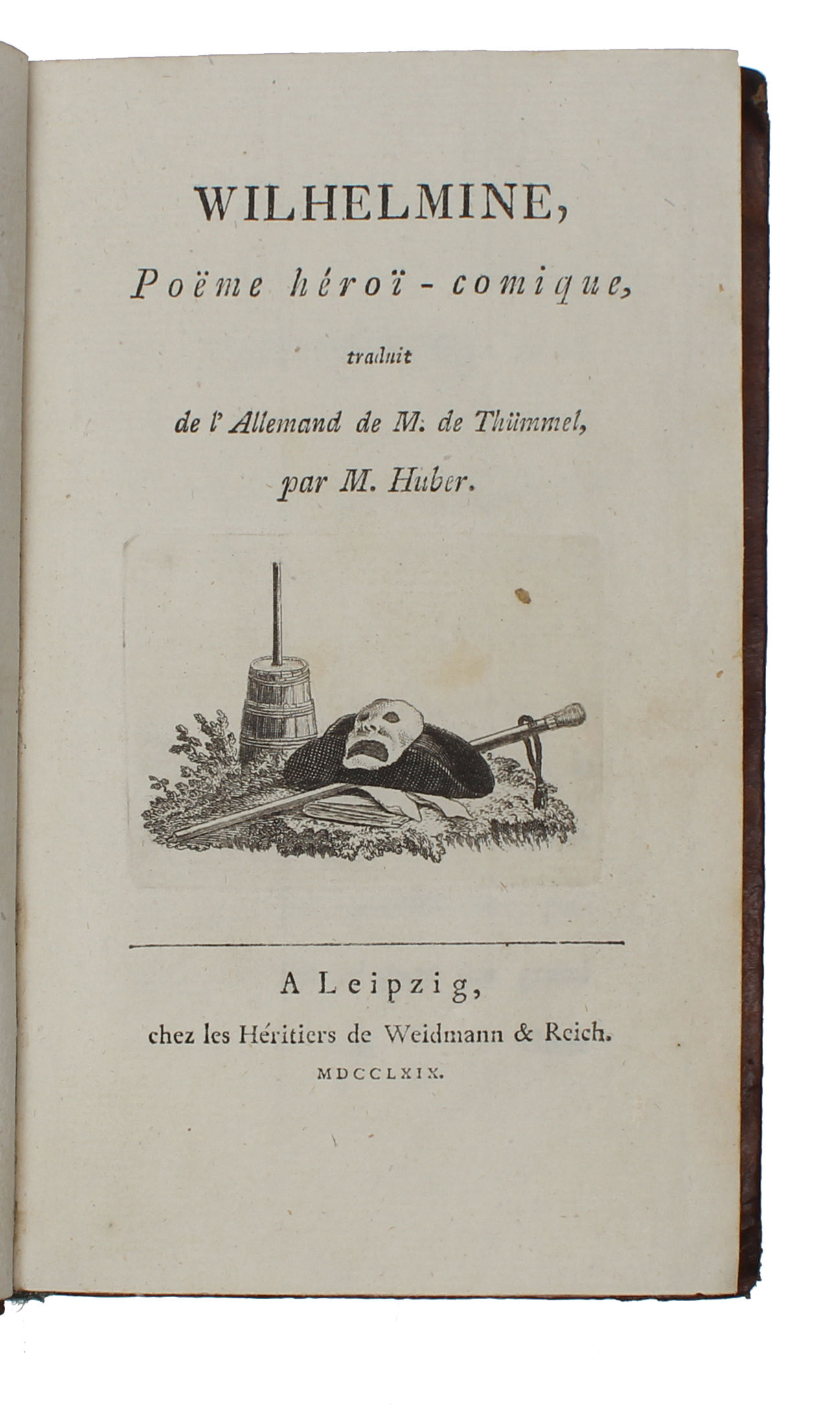 First French translation of Thummel’s famous "Wilhelmine", regarded by many as German literature’s finest example of a mock epic produced in the wake of Pope's “Rape of the Lock”.