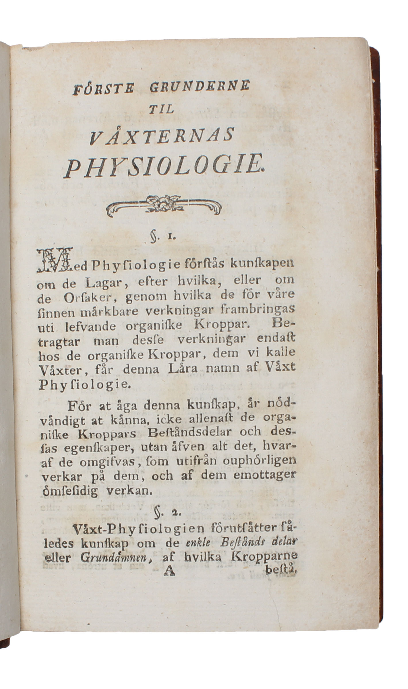 Uppsala, J. F. Edman, 1799. 8vo. In a nice later full calf binding with five raised bands and gilt lettering to spine. Light miscolouring to spine. Light occassional brownspotting throughout, otherwise a nice copy. (4), 416 pp.