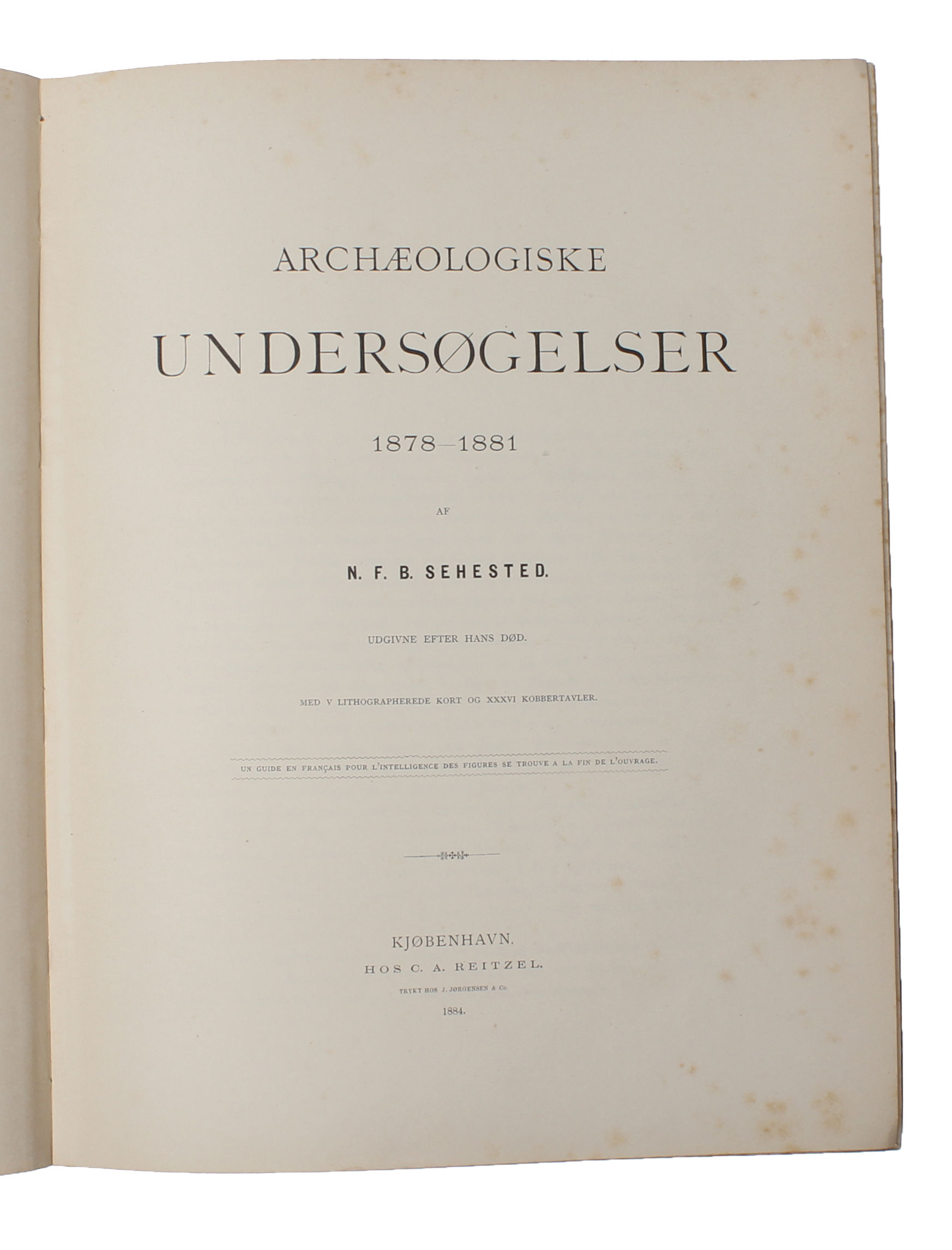 Kjøbenhavn, Reitzel, 1884. Stor 4to. Originalt bogtrykt papbind med læderryg. Udvendig med noget slitage, indvendig sporadisk brunplettet. . X,180 pp., 5 litograferede kort samt 36 kobberstukne plancher med talrige figurer.