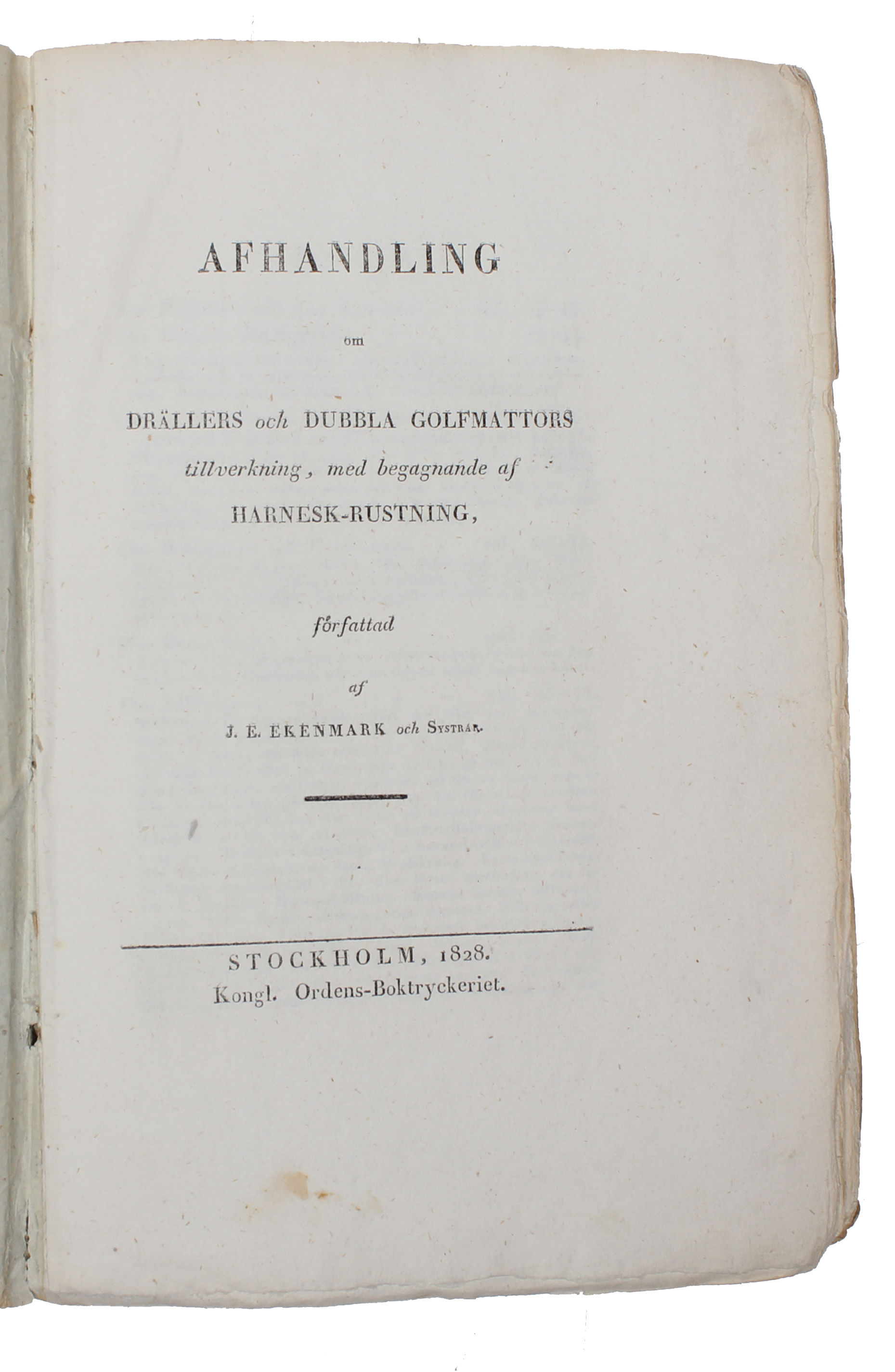 Afhandling om Drällers och dubbla Golfmattors tilverkning, med begagnande af Harnesk-rystning. - [TREATISE ON HOW TO MAKE VARIOUS FABRICS]