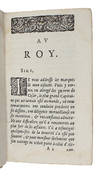 Paris, (Elzevir), 1648. 12mo. In contemporary full vellum with yapp edges. Small paper-label pasted on to top of spine. Soiling and miscolouring to extremities. Vague marginal dampstain throughout. (10), 250, 192 pp. + 1 folded plate.