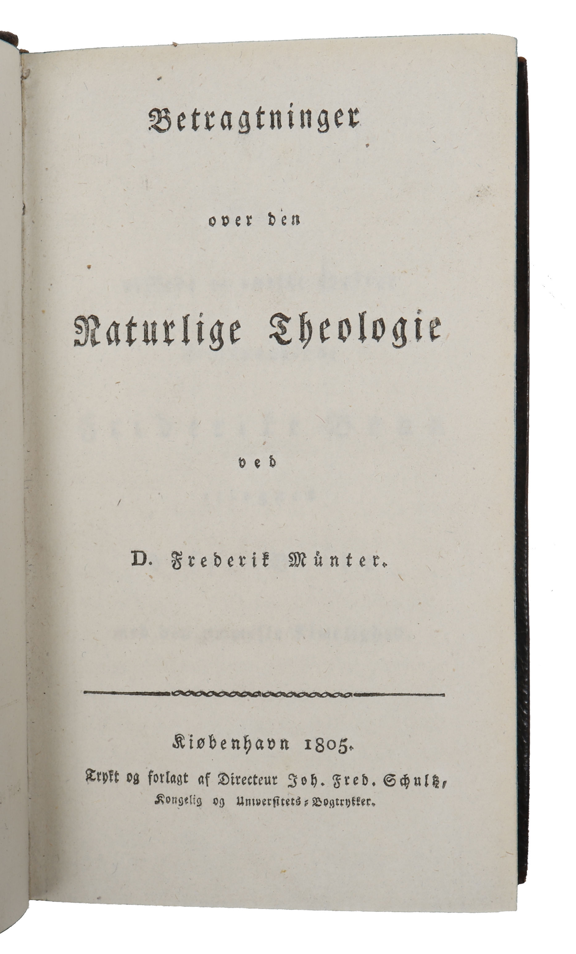 Kiøbenhavn, Joh. Fred. Schultz, 1805. 8vo. In contemporary full calf with richly gilt spine. A few scratches to extremities and small paper-label pasted on to top of spine. All edges coloured in blue. Internally fine and clean. X, 382 pp.
