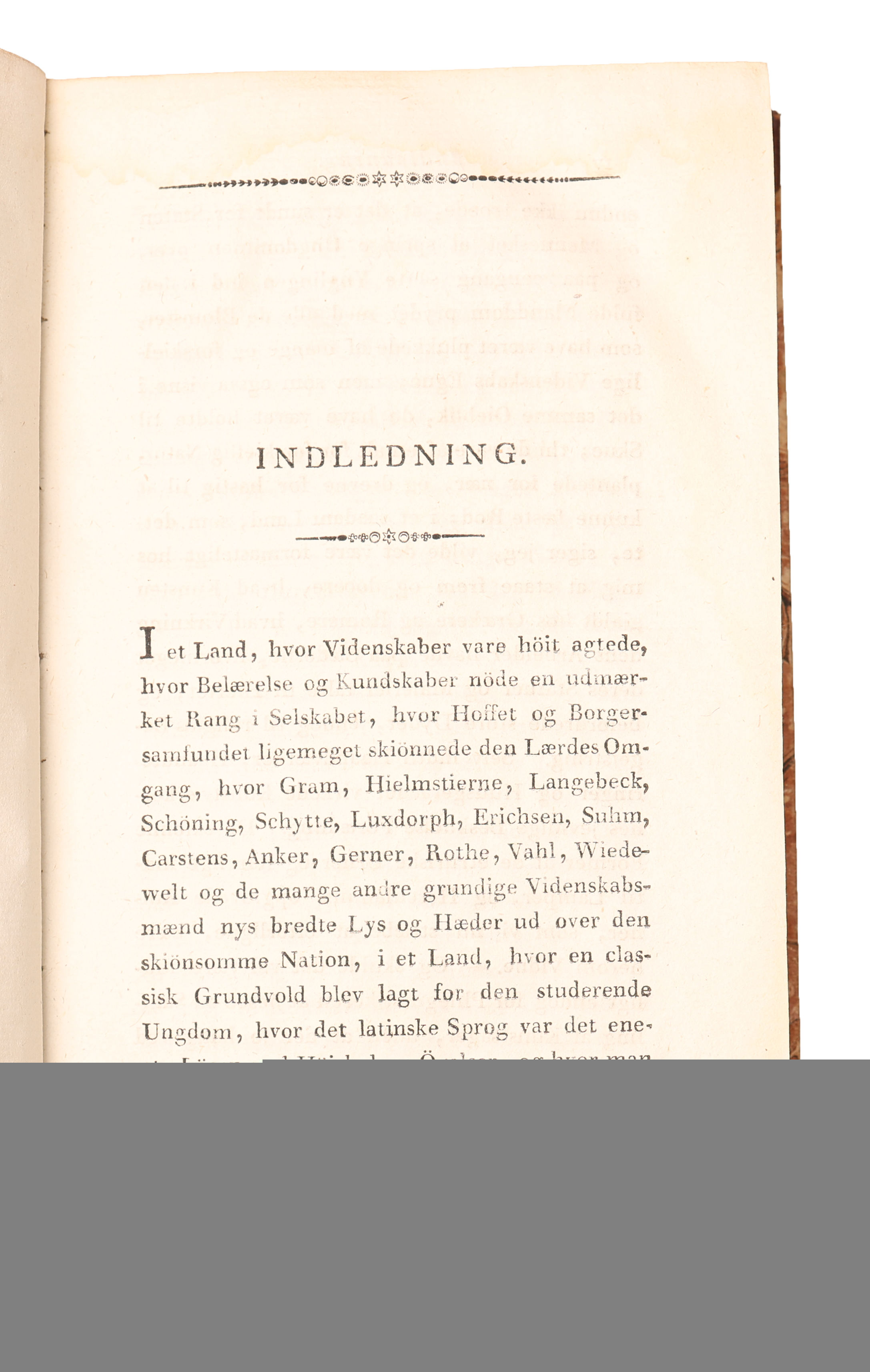Kiöbenhavn (Copenhagen), Andreas Seidelin, 1807. 8vo. In contemporary half calf with gilt lettering and ornamentation to spine. Traces from old paper-label to spine. A nice and clean copy. LXXV, (1), 384 pp.