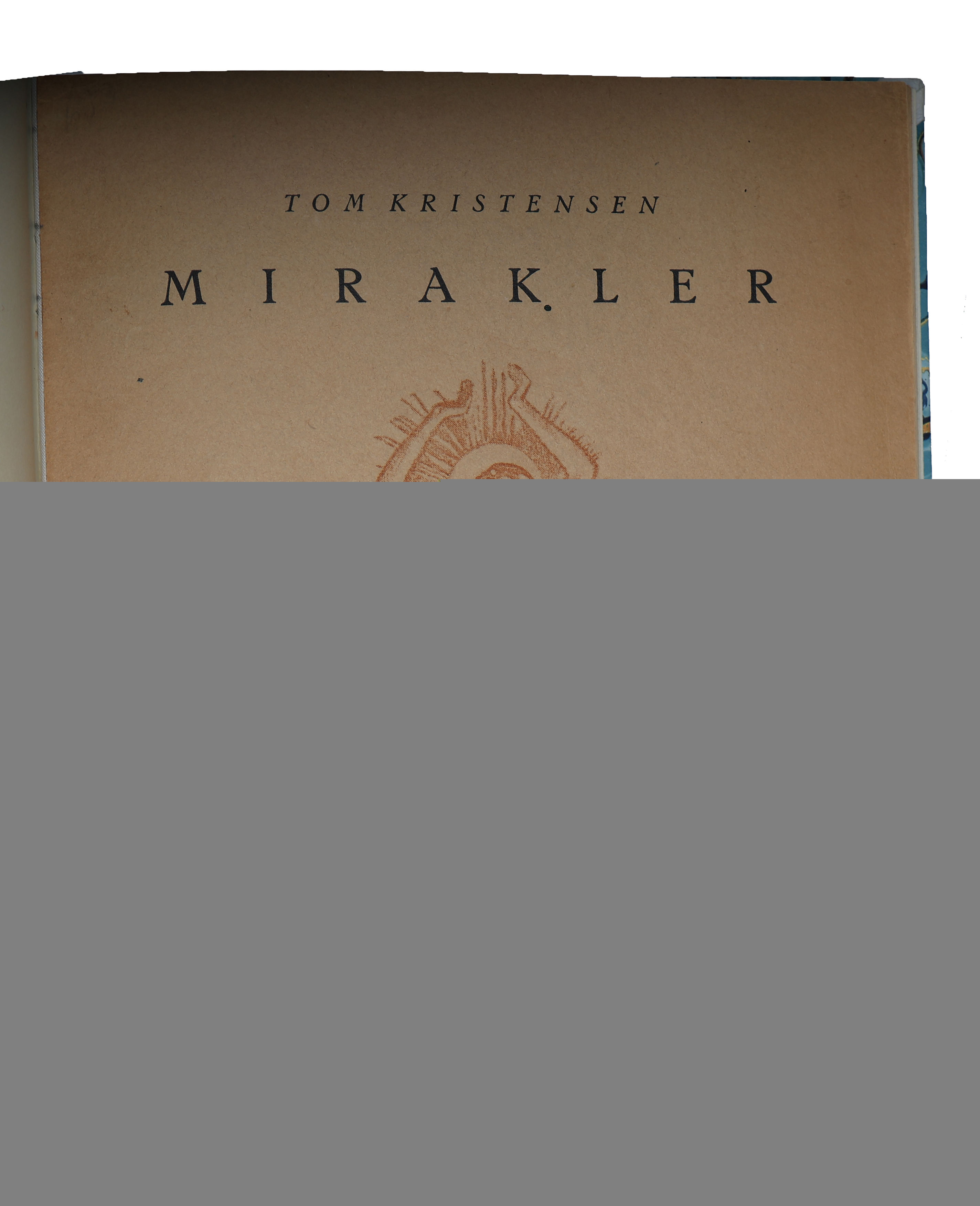 Kjøbenhavn, Gyldendals Sortiment, 1922. Lille 4to. Indbundet ubeskåret med de originale omslag i et pænt senere halvlæderbind med rygtitel. Hjørner forstærket med pergament. Med egenhændig dedikation fra Kristensen på smudstitelbladet: "31 December 1924 / Til Herr Aksel V. Nielsen - / Her er mere Nyhavn! / Venlige Hilsener / fra / Tom Kristensen." Ren og pæn indvendig. (2),55,(3) pp.