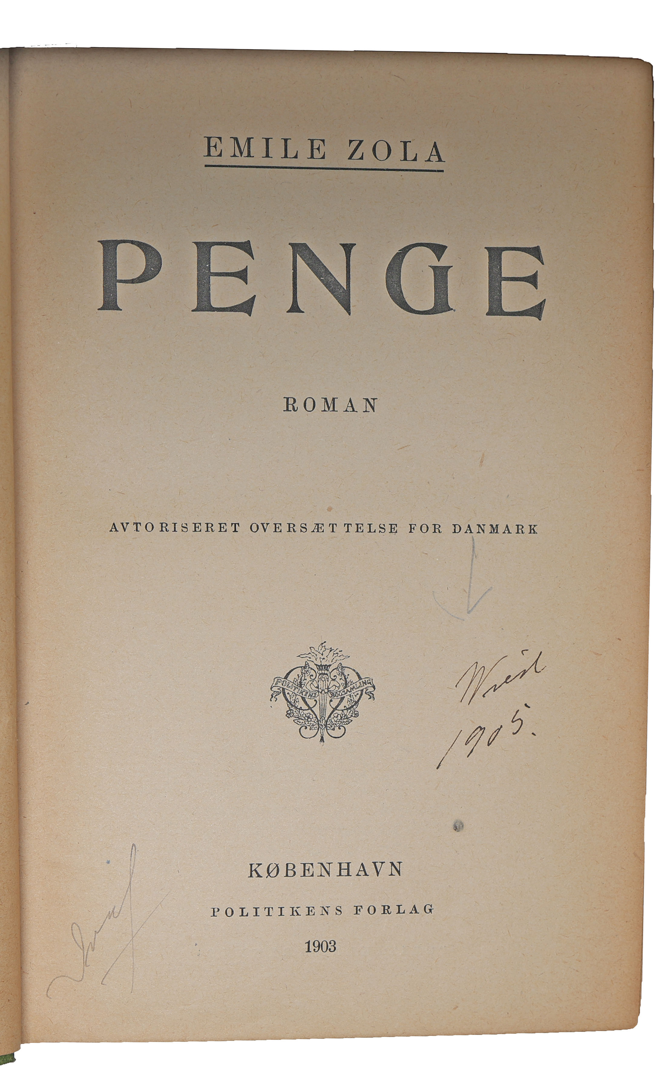 Penge. Roman. Avtoriseret Oversættelse for Danmark. - [GUSTAV WIEDS EKSEMPLAR.]