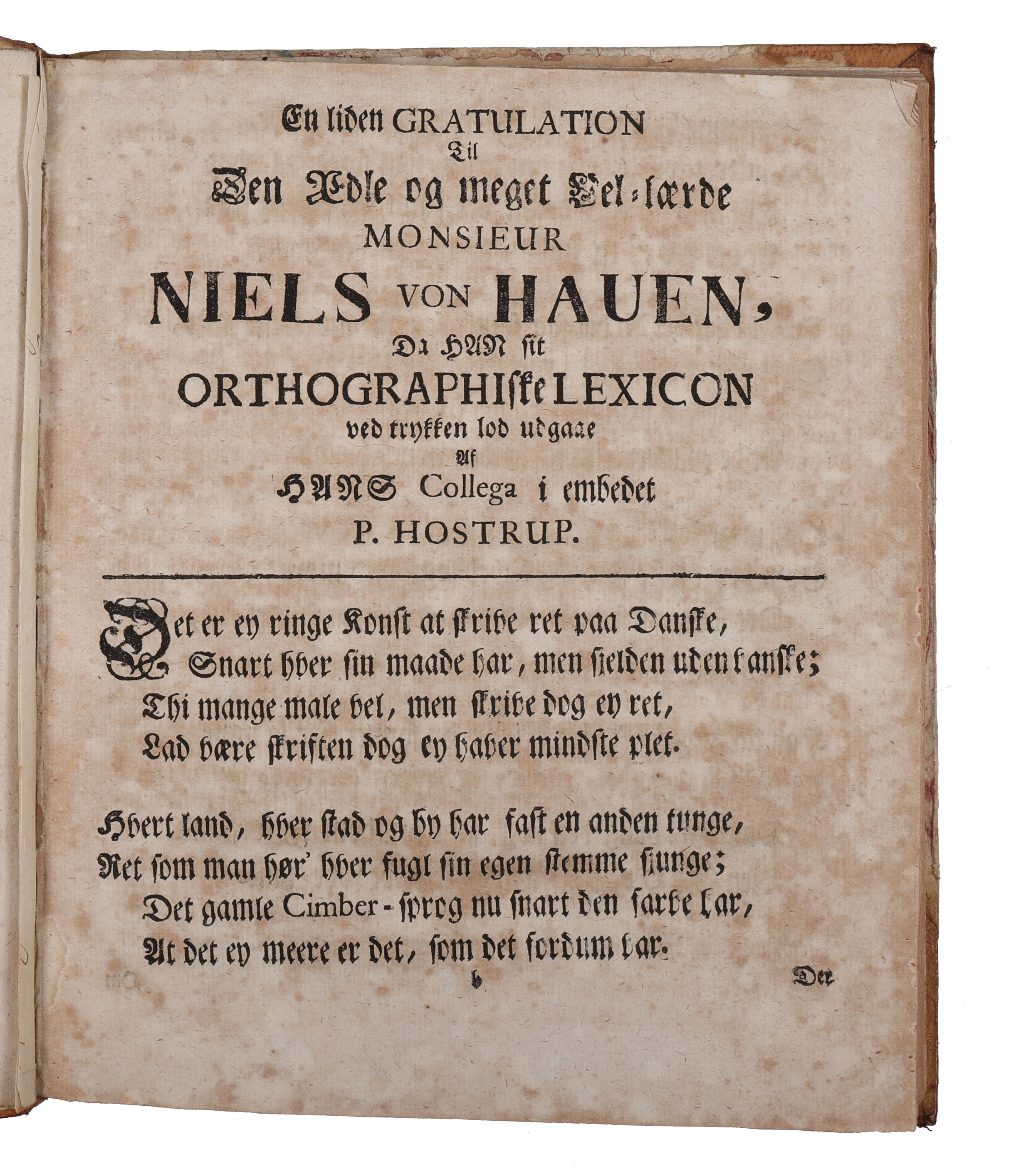 Originaludgaven af Niels von Hauen hovedværk hvormed han påbegyndte den "den ortografiske fejde" med Th. Clitau."(Niels von Haven) gjorde sit navn kendt ved udgivelsen af Et lidet orthographisk Lexicon eller Ord-Bog, 1741, ikke mindst fordi dette leksikon gav anledning til "den ortografiske fejde" mellem v.H. og Th. Clitau og som derpå foranledigede J. P. Høysgaards første skrift. Bogen indeholder et forslag om afskaffelse af store bogstaver undtagen ved egennavne, og af verbernes flertalsformer. Samtidig er den et interessant forsøg på at sammenstille homonymer, enslydende, men forskelligt stavede ord. Det er ikke helt vellykket, men det giver ved sine sammenstillinger, tit også ved direkte oplysninger, sproghistorisk værdifuld besked om rigsmålsudtalen i Odense omkr. 1750, ligesom det indeholder en stor del ordsprog og talemåder." (Den Store Danske Encyklopædi).Biblioteca Danica IV, 69.