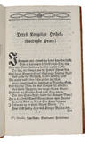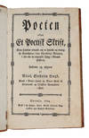 The rare first edition of Bøgh’s final publication. A few years before his death, he considered starting a weekly publication where religious teachings would be addressed in verse. He had written over a hundred sheets but lacked the money and time to publish it. Only a fragment, the present, was published. Niels Seidelin Bøgh (1717—1778) was a pastor born in Trige, Denmark. As a theological candidate, he published a large original collection of hymns titled "Den sjungende Theologus" in 1742. In 1743, Bøgh became a ship's chaplain and accompanied Danneskjold's squadron to Algiers in 1746. After his return, he wrote "Den algierske Freds Historie" (The History of the Algerian Peace) in verse. In 1747, he was appointed parish priest in Kerteminde, became district provost in 1761, and died on August 23, 1778. OCLC only list two copies, both in Copenhagen. Not in Biblioteca Danica.