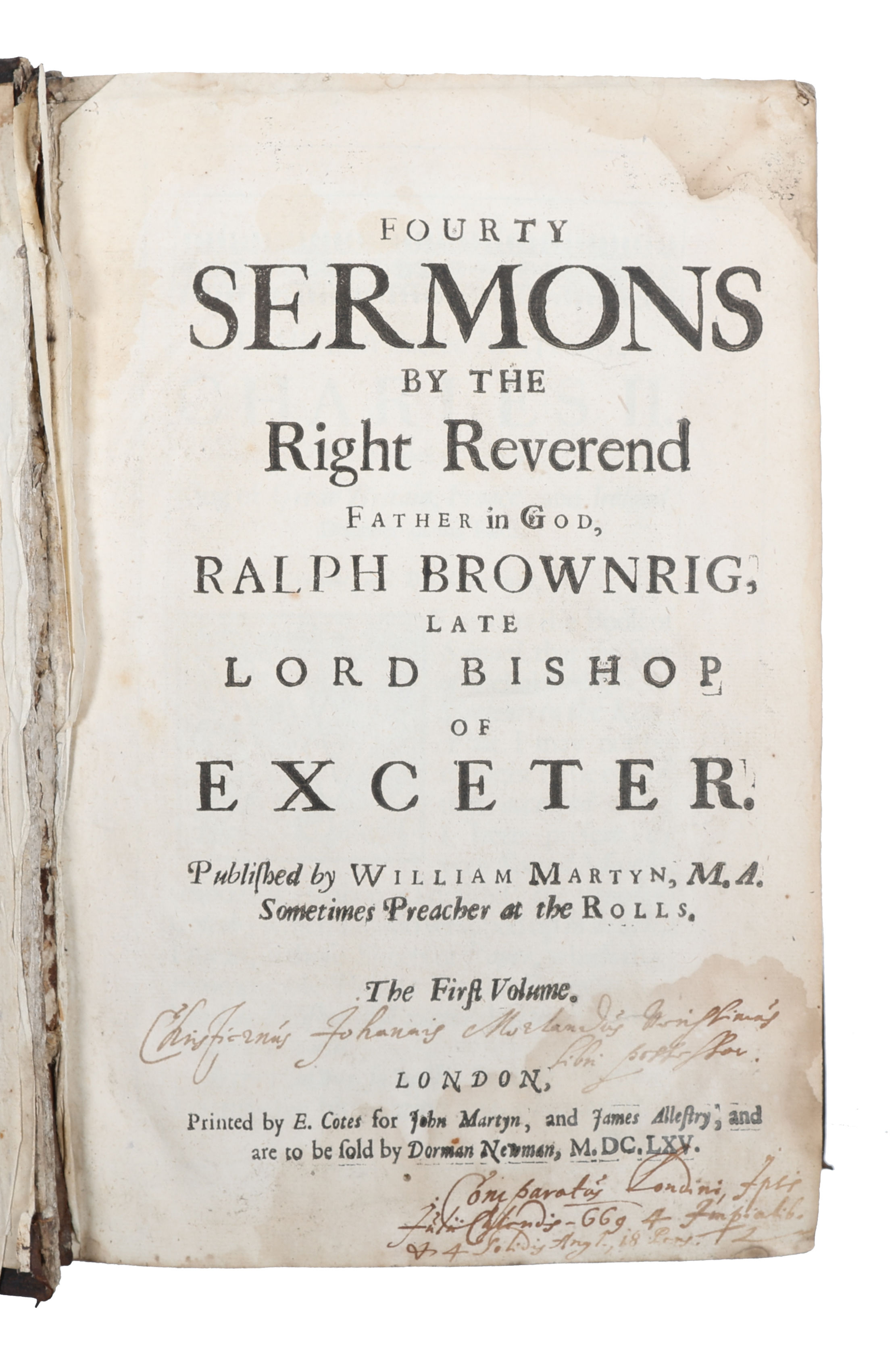 Fourty sermons by the right reverend father in God, Ralph Brownrig, late Lord Bishop of Exceter. Published by William Martyn, M.A. preacher at the Rolls. (Second volume with seperate title-page:) Twenty five sermons The second volume.