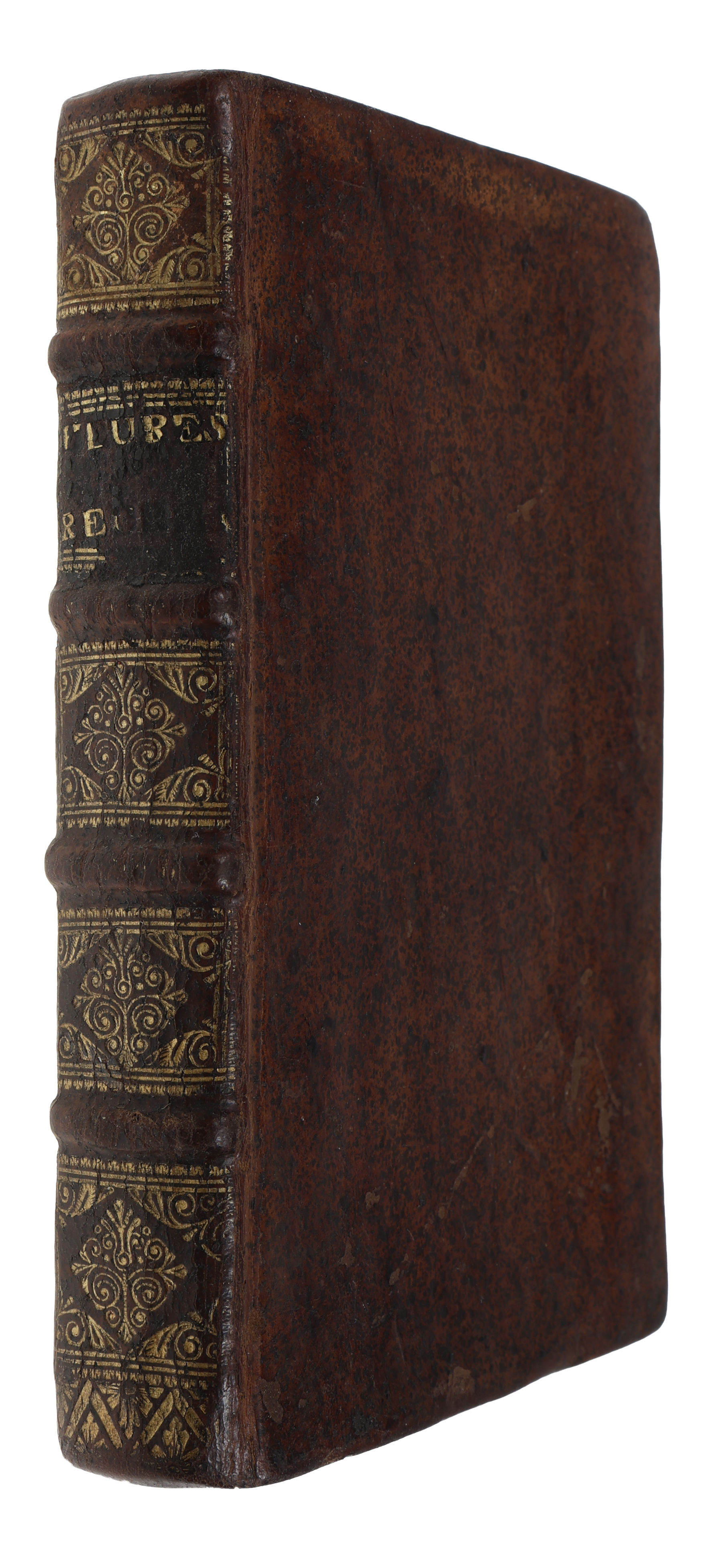 A la Haye, Abraham, Arondeus, 1699. 8vo. In contemporary full calf with four raised bands with gilt lettering and ornamentation to spine. Previous owner's name (Peter Otto Rosenørn - owner of Hersomgård) in contemporary hand to front free end-paper. Parts of gilting worn off. Internally with a few occassional brownspots. (10), 235 pp.