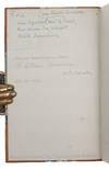 Kjøbenhavn, P.G. Philipsens Forlag, 1841. 8vo. (8), 350 pp. Gift binding of elaborately blindpatterned full cloth with single gilt lines to spine. All edges gilt and printed on thick vellum paper. A splendid copy in completely unrestored state with minimal edge wear. Slight sunning to upper 1 cm of front board and slight bumping to corners and capitals. Leaves completely fresh and clean. Pencil-annotation from the Kierkegaard archive of the Royal Library (nr. 83) and discreet stamp from the Royal Library of Copenhagen to inside of front board (with a deaccession-inscription) and to verso of title-page. With ownership signatures of P.S. Lund and Troels Lund to title-page. Inside of back board with previous owner's pencil-annotations listing the entire provenance of the copy and explaining that this is one of two copies printed on thick vellum paper. Laid in is the original agreement for the exchange of real property between the previous owner and the Royal Library of Denmark, from which is evident that in 2003, The Royal Library and the previous owner legally agreed to exchange their respective copies of Om Begrebet Ironie – the present one for Ørsted, being one of two copies on thick vellum paper, and the copy on normal paper for Heiberg, which is now in the holdings of the Royal Library of Denmark. Arguably the best possible copy one can ever hope to acquire of Kierkegaard's dissertation – one of two copies on thick vellum paper, being a presentation-copy from Kierkegaard to the discoverer of electromagnetism H.C. Ørsted. Inscribed to verso of front fly-leaf: "Til / Hans Magnificens / Universitetets Rector / Hr. Conferentsraad Ørsted. / C og D.M." (For / His Magnificence / Principle of the University / Mr. [a high Danish title, now obsolete] Ørsted. / C (ommandør) (i.e. Commander) and DM (short for Dannebrogsmand, another honourable title) ). The copy is with the Thesis, and both the day and the time has been filled in by hand. As mentioned in the introduction to the Irony, Kierkegaard had two copies made on thick vellum paper –one for himself (which is in the Royal Library of Denmark), and one for H. C. Ørsted, a towering figure of the Danish Golden Age, one of the most important scientists that Denmark has produced, then principle of the University of Copenhagen. This copy is unique among the 11 registered presentation-copies of Kierkegaard's dissertation and is without doubt the most desirable. It is approximately twice as thick as the other copies and stand out completely. THIS IS KIERKEGAARD'S dissertation, which constitutes the culmination of three years' intensive studies of Socrates and "the true point of departure for Kierkegaard's authorship" (Brandes). The work is of the utmost importance in Kierkegaard's production, not only as his first academic treatise, but also because he here introduces several themes that will be addressed in his later works. Among these we find the question of defining the subject of cognition and self-knowledge of the subject. The maxim of "know thyself" will be a constant throughout his oeuvre, as is the theory of knowledge acquisition that he deals with here. The dissertation is also noteworthy in referencing many of Hegel's theses in a not negative context, something that Kierkegaard himself would later note with disappointment and characterize as an early, uncritical use of Hegel. Another noteworthy feature is the fact that the thesis is written in Danish, which was unheard of at the time. Kierkegaard felt that Danish was a more suitable language for the thesis and hadto petition the King to be granted permission to submit it in Danish rather than Latin. This in itself poses as certain irony, as the young Kierkegaard was known to express himself poorly and very long-winded in written Danish. One of Kierkegaard's only true friends, his school friend H.P. Holst recounts (in 1869) how the two had a special school friendship and working relationship, in which Kierkegaard wrote Latin compositions for Holst, while Holst wrote Danish compositions for Kierkegaard, who "expressed himself in a hopelessly Latin Danish crawling with participial phrases and extraordinarily complicatedsentences" (Garff, p. 139). When Kierkegaard, in 1838, was ready to publish his famous piece on Hans Christian Andersen (see nr. 1 & 2 above), which was to appear in Heiberg's journal Perseus, Heiberg had agreed to publish the piece, although he had some severe critical comments about the way and the form in which it was written – if it were to appear in Perseus, Heiberg demanded, at the very least, the young Kierkegaard would have to submit it in a reasonably readable Danish. "Kierkegaard therefore turned to his old schoolmate H. P. Holst and asked him to do something with the language…" (Garff, p. 139). From their school days, Holst was well aware of the problem with Kierkegaard's Danish, and he recounts that over the summer, he actually "translated" Kierkegaard's article on Andersen into proper Danish. The oral defense was conducted in Latin, however. The judges all agreed that the work submitted was both intelligent and noteworthy. But they were concerned about its style, which was found to be both tasteless, long-winded, and idiosyncratic. We already here witness Kierkegaard's idiosyncratic approach to content and style that is so characteristic for all of his greatest works. Both stylistically and thematically, Kierkegaard's and especially a clear precursor for his magnum opus Either-Or that is to be his next publication. The year 1841 is a momentous one in Kierkegaard's life. It is the year that he completes his dissertation and commences his sojourn in Berlin, but it is also the defining year in his personal life, namely the year that he breaks off his engagement with Regine Olsen. And finally, it is the year that he begins writing Either-Or. In many ways, Either-Or is born directly out of The Concept of Irony and is the work that brings the theory of Iro