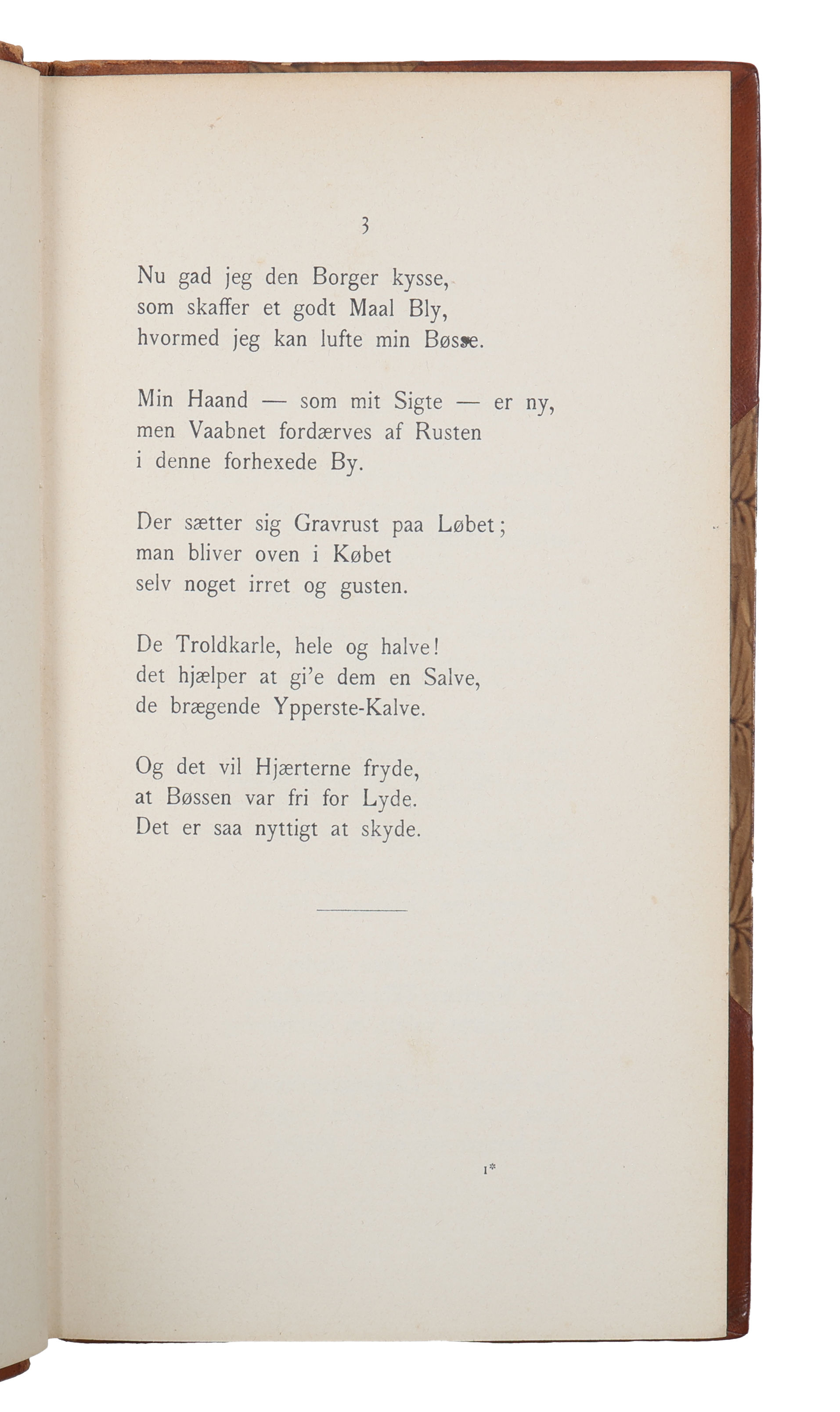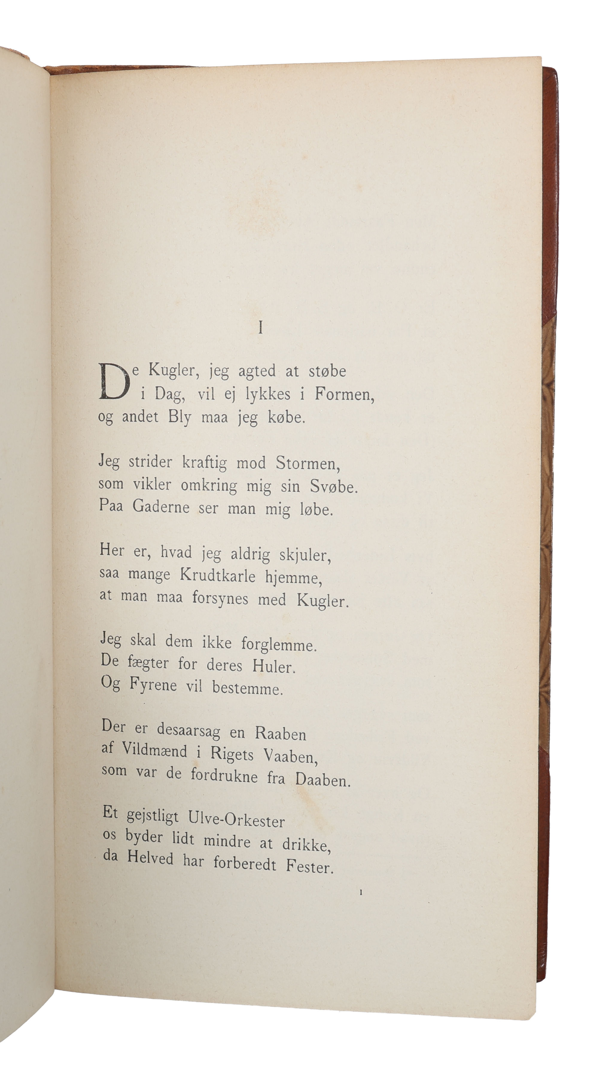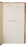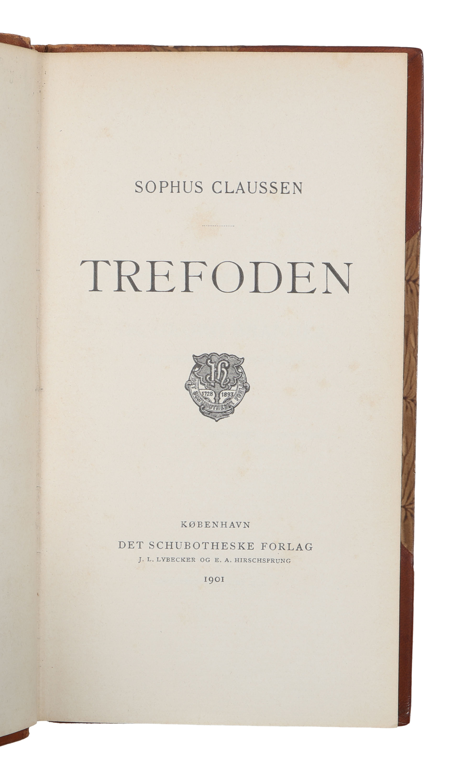 København, Det Schubotheske Forlag, 1901. 8vo. Indbundet i et pænt, samtidigt halvlæderbind med rygforgyldning. Ryg lettere falmet. En smule ubetydeligt slid ved kapitæler og kanter. Med egenhændig (delvist beskråret) tilskrift fra forfatteren til Herman Bang på smudstitelbladet: "Hr Herman Bang / Beklag ikke en ulykk[...]". Ren og pæn indvendig.