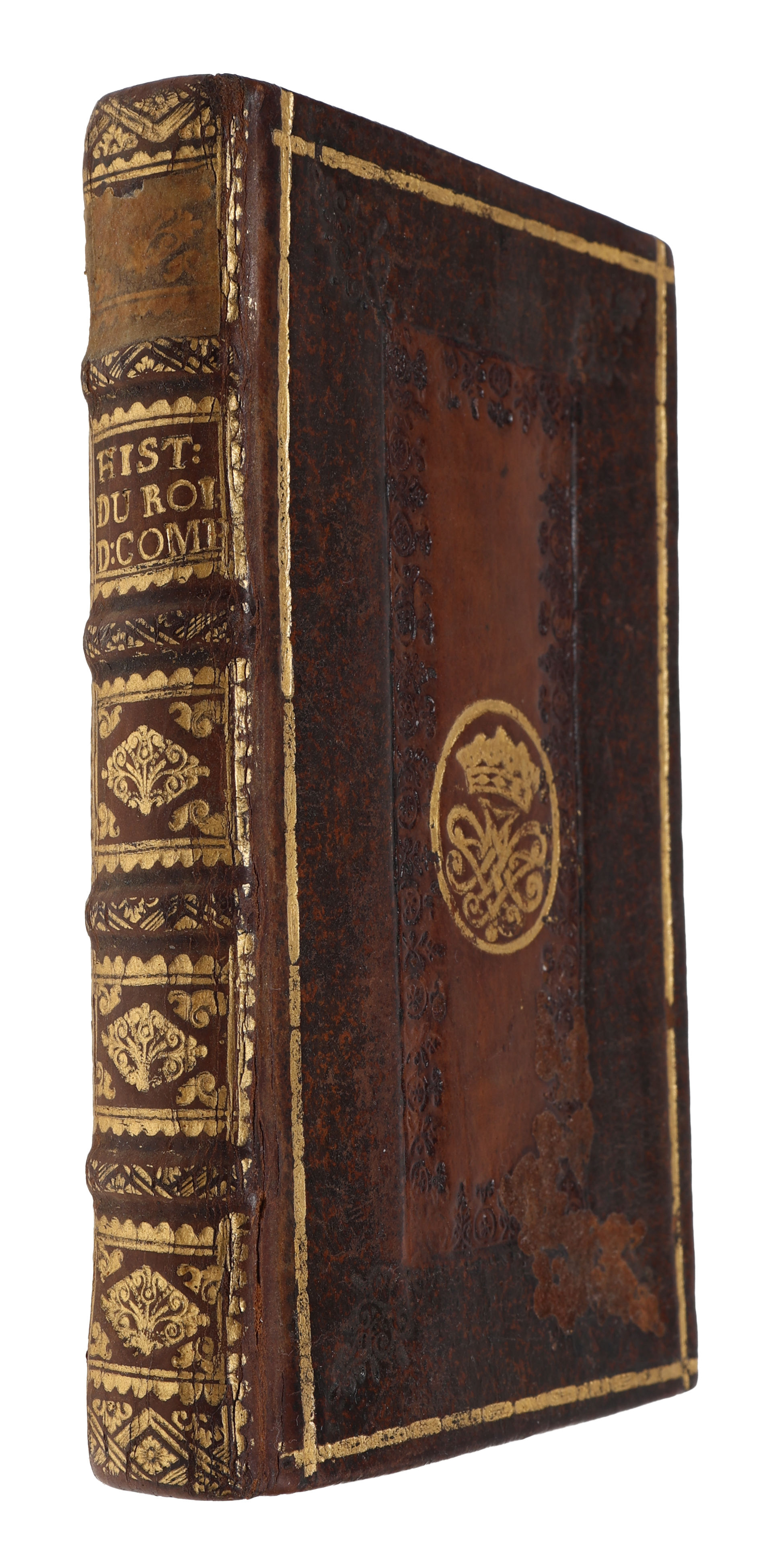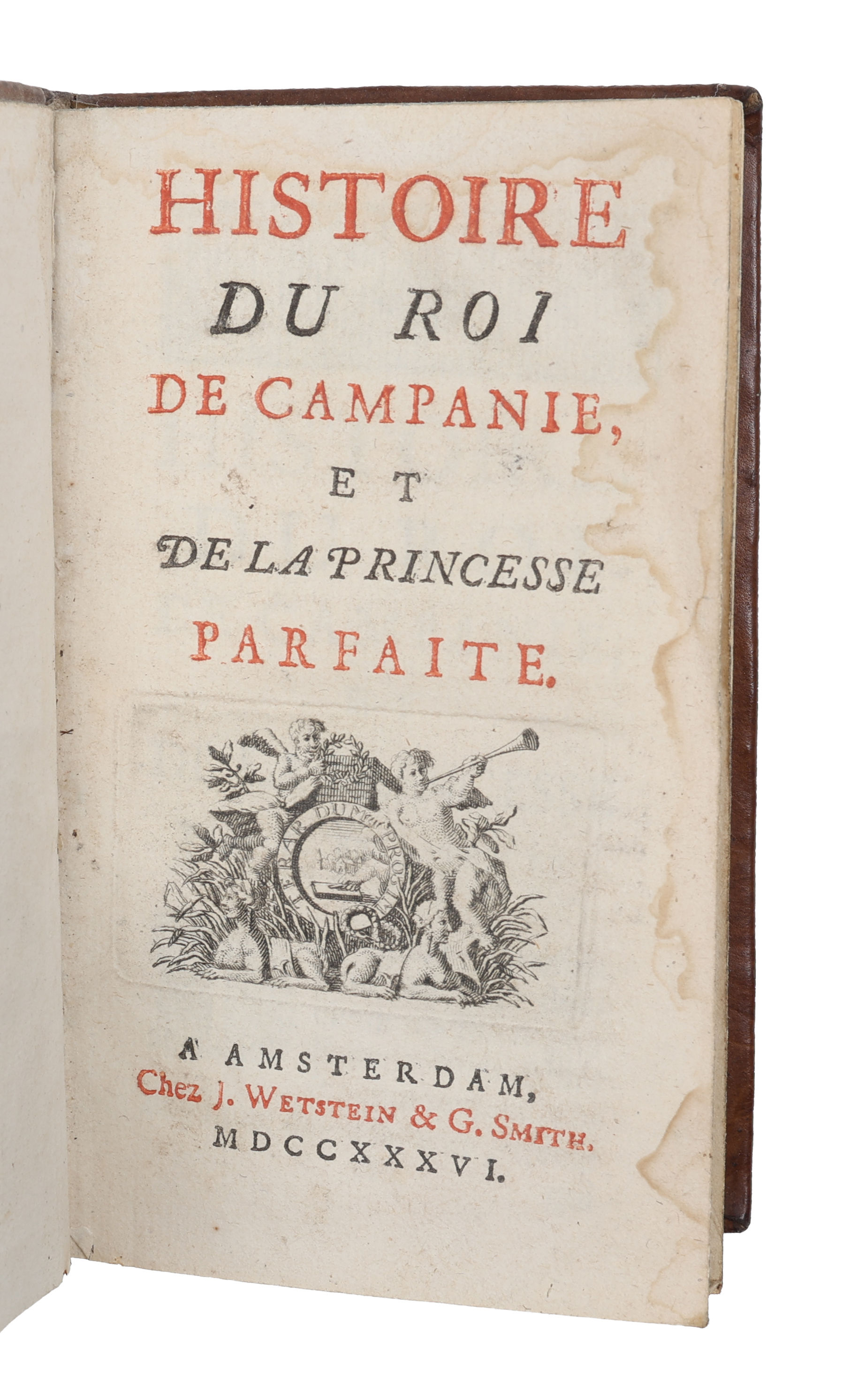 Amsterdam, Wetstein, 1736. 12mo. Bound in a nice contemporary Cambridge-style mirror binding with four raised bands and richly gilt spine. Crowned super ex-libris to front board. Paper-label pasted on to top of spine and boards with a bit of loss of leather. Title-page with dampstain in outer margin. (2), 230 pp.