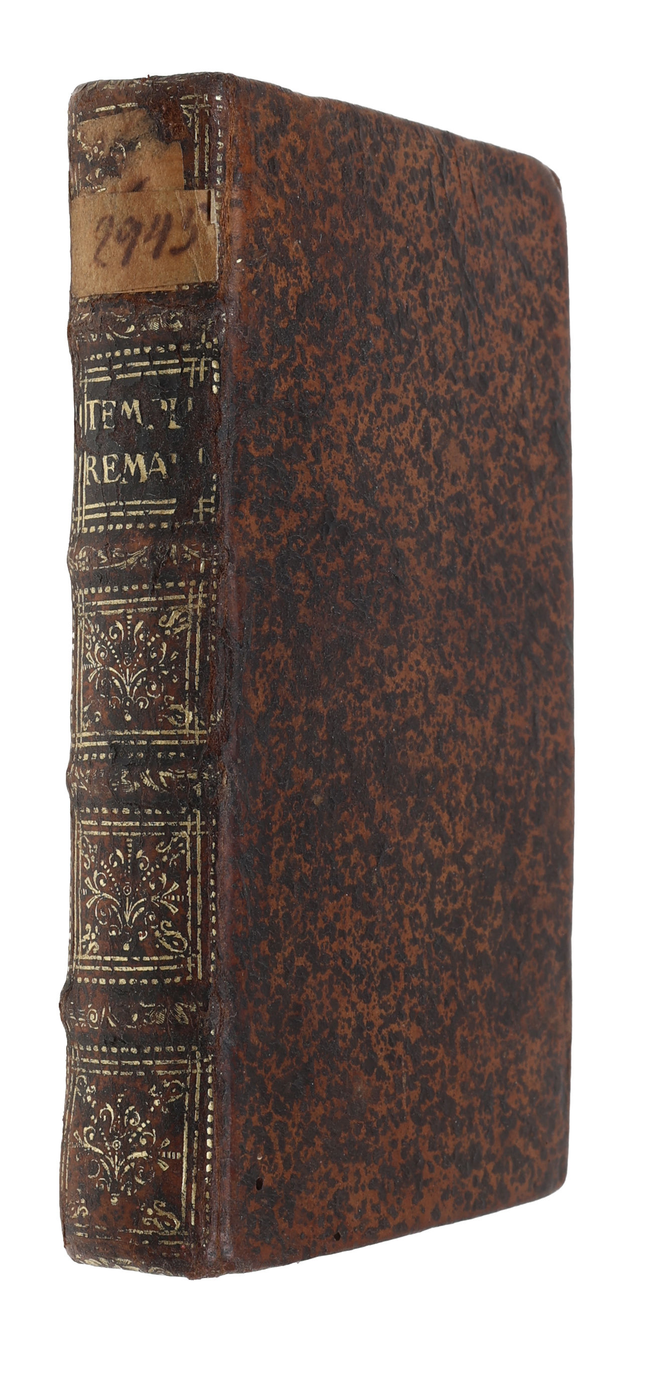 La Haye, Jean & Daniel Steucker, 1685. 12mo. In contemporary full calf with four raise bands and gilt lettering and ornamentation to spine. Parts of gilting worn off and small paper-label pasted on to top of spine. Previous owner's name in contemporary hand to title-page. (28), 270, (1) pp.