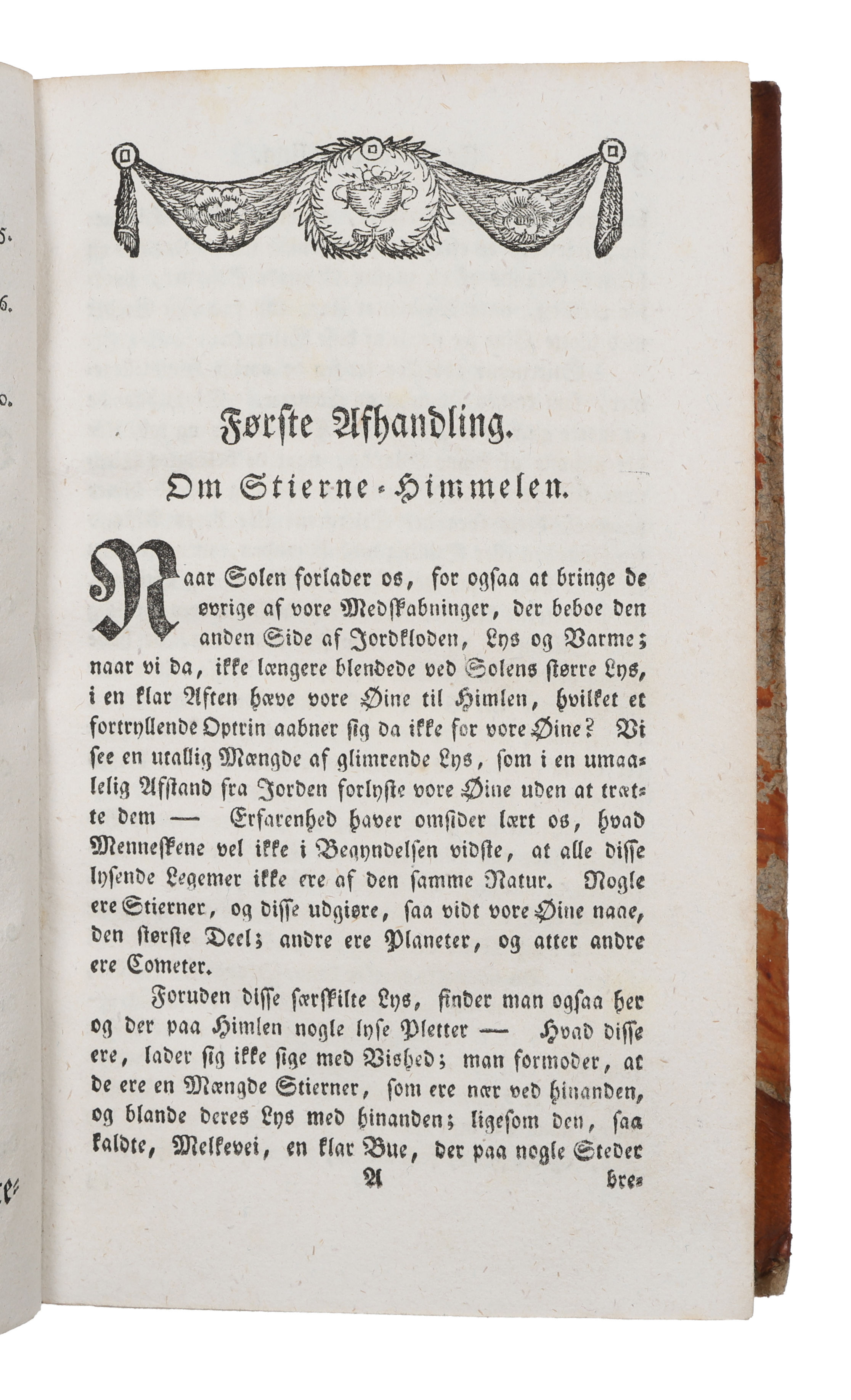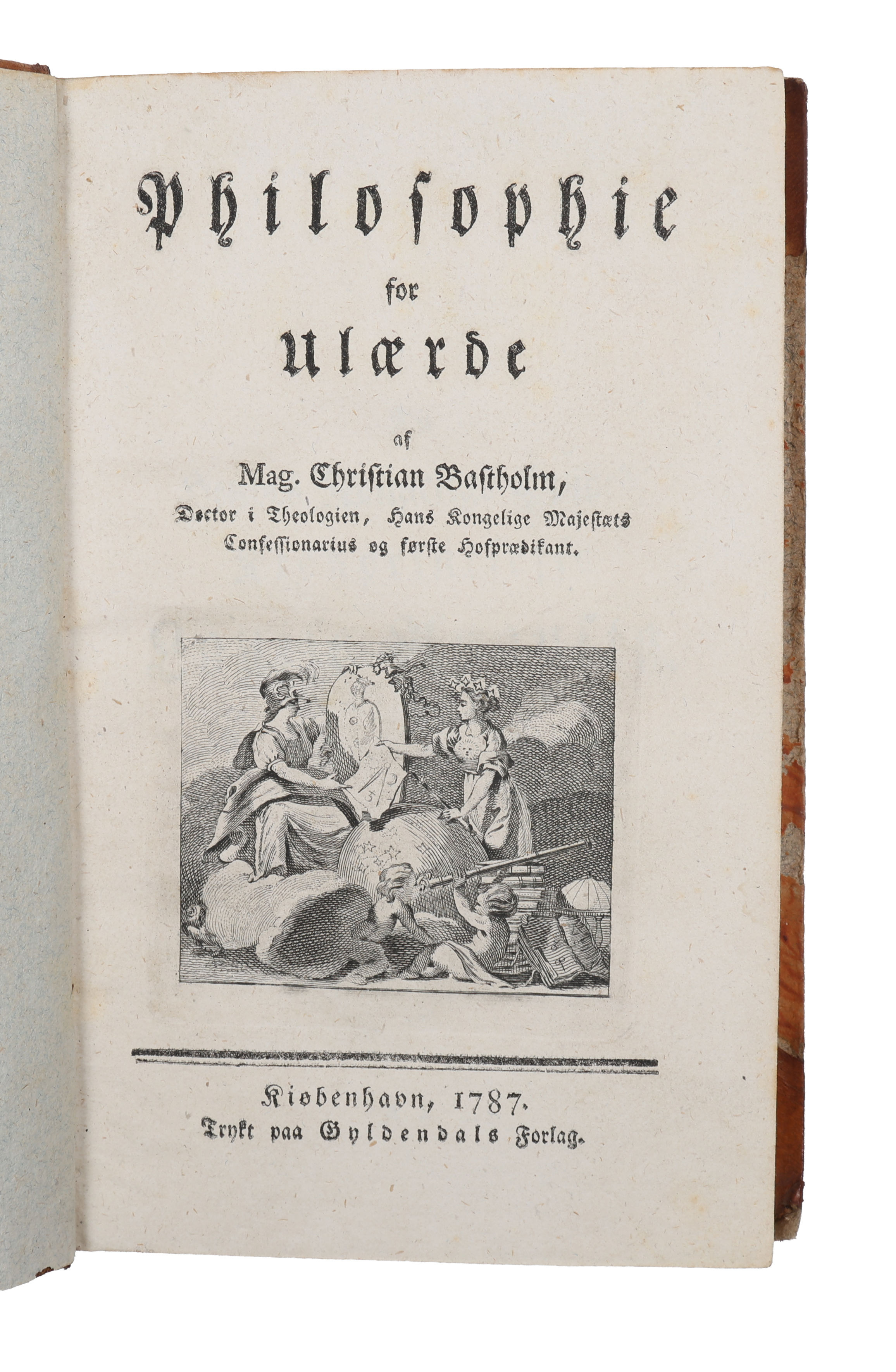 Kiøbenhavn, Gyldendal, 1787. 8vo. In contemporary half calf with five raised bands. Small paper-labe pasted on to top of spine. Boards with scratches, otherwise a nice and clean copy. (14), 214 pp.