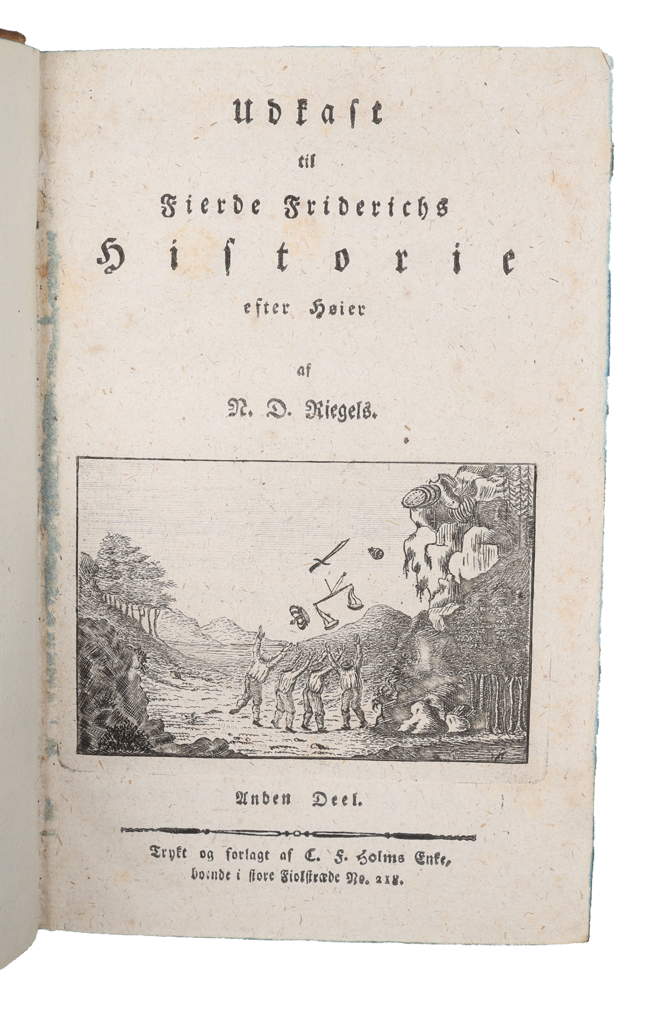 Udkast til Fierde Friderichs Historie efter Høier af N.D. Riegels. 1.-2. Deel. 2 vols.