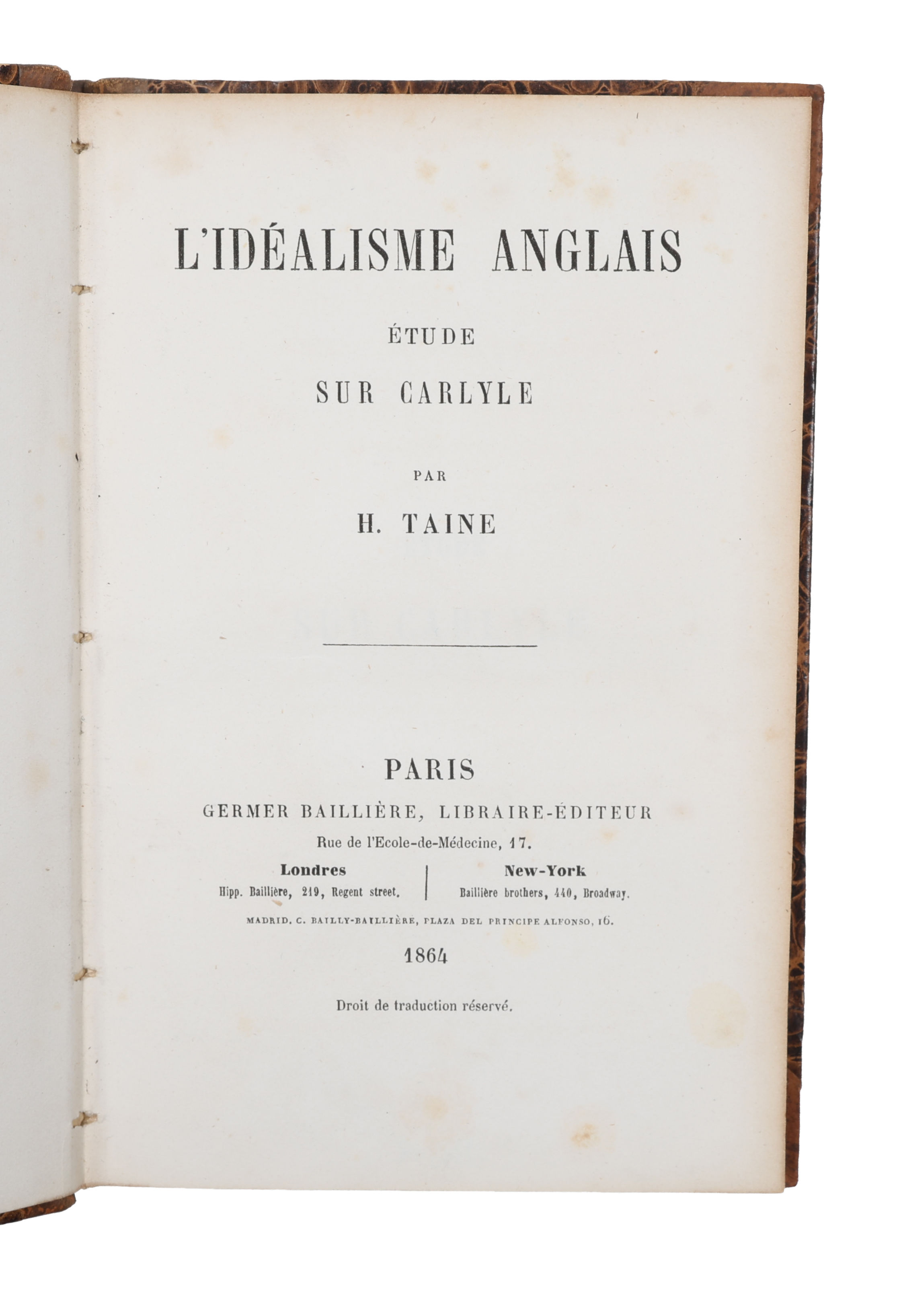 Paris: Germer Baillière, 1864. 8vo. In contemporary half calf with gilt lettering to spine. Spine slighly miscoloured. Internally with occassional brownspotting and underlignings in pencil. Previous owner's name to verso of front board. (4), 187 pp.