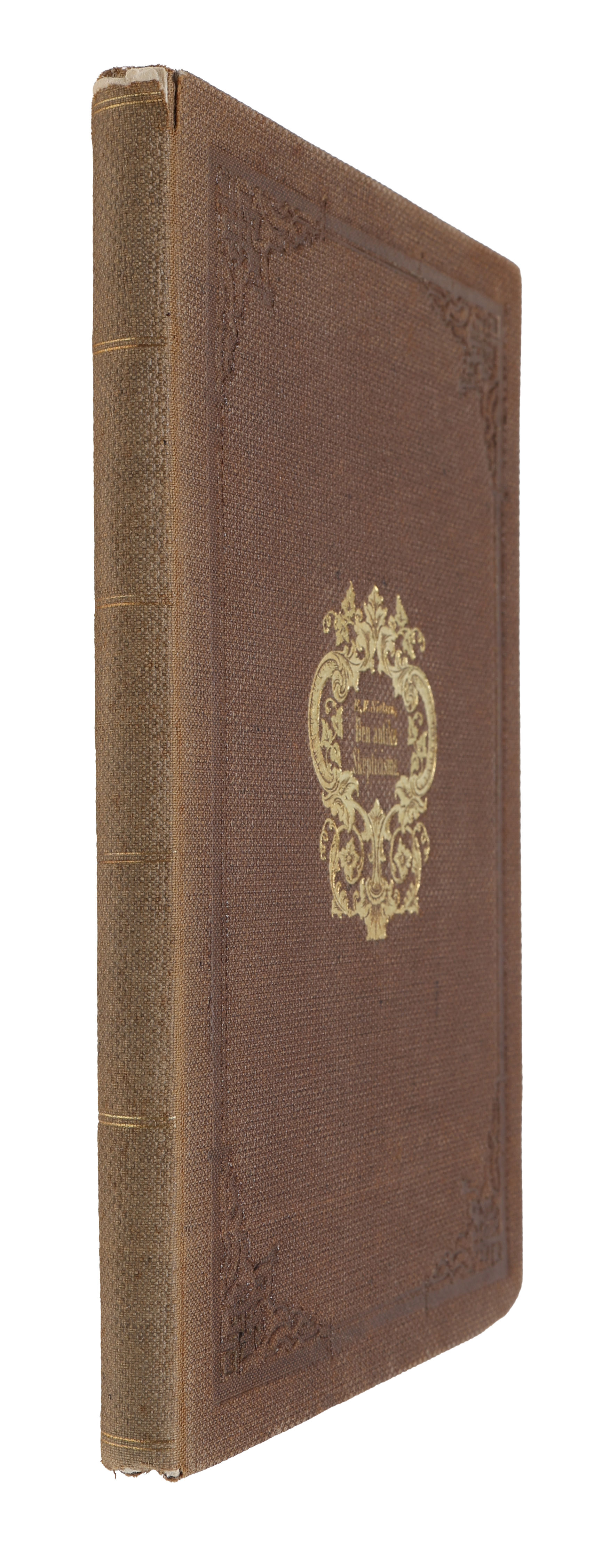 Bruxelles, Hauman et Cie, 1841. 8vo. In contemporary half calf with gilt lettering and ornamentation to spine. Wear to extremities, boards with scratches and head of spine chipped. Internally nice and clean. (4), 214 pp. + 1 frontispiece, 1 folded map of Russia and 1 folded coloured map of Saint Petersburg. Exceedingly rare first edition of Alexandre Ferrier guidebook on Russia containing customs regulations (what may be imported into Russia), timetables for steamships from Le Havre and Lübeck, advice on how and where best to exchange foreign currency for Russian banknotes (preferably Dutch guilders), a list of ancient manuscripts held in the Public Library, and a wealth of other details on a wide range of aspects of public and private life. The author Alexandre Ferrier (1810–?), writer and member of the French Statistical Society and the Parisian Geographical Society, traveled through Russia in 1840.