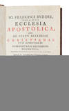 A fine copy of Budde’s historical and theological commentary on the state of the Christian Church during the time of the Apostles also serving as an introduction to the Epistles of Paul and other Apostles, providing context for their writings Johann Franz Buddeus (1667-1729) born in Pomerania, was professor of Greek and Latin, moral philosophy and theology at Leipzig and Halle.