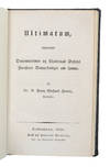 Kjøbenhavn, P.G. Philipsens Forlag, 1841. 8vo. (4), 350 pp., 1 f. (blank), 2 pp. (advertisements). Completely uncut and partly unopened in the original brown cardboard binding. Rebacked with paper perfectly matching that of the boards. Corners restored. Title-page evenly browned and a few leaves with a bit of brownspotting, but overall in unusually nice condition, clean, fresh, and bright. Completely unmarked. A fabulous copy of the first edition of Kierkegaard’s dissertation, here in the original binding, which is of the utmost scarcity. We have only seen it in this state once before. And of all the copies we have handled of the Irony over the last decades, we have only once before come across a copy with the advertisement-leaf in the back. This is virtually never present. This completely uncut copy is approximately 1 cm taller and wider than regular copies. The spines of the original Kierkegaard cardboard bindings are always just thin paper directly glued on the block, making them extremely fragile, especially on the thicker volumes. If one finds these original bindings, the spines are almost always more or less disintegrated. Kierkegaard's dissertation constitutes the culmination of three years’ intensive studies of Socrates and “the true point of departure for Kierkegaard’s authorship” (Brandes). The work is of the utmost importance in Kierkegaard’s production, not only as his first academic treatise, but also because he here introduces several themes that will be addressed in his later works. Among these we find the question of defining the subject of cognition and self-knowledge of the subject. The maxim of “know thyself” will be a constant throughout his oeuvre, as is the theory of knowledge acquisition that he deals with here. The dissertation is also noteworthy in referencing many of Hegel’s theses in a not negative context, something that Kierkegaard himself would later note with disappointment and characterize as an early, uncritical use of Hegel. Another noteworthy feature is the fact that the thesis is written in Danish, which was unheard of at the time. Kierkegaard felt that Danish was a more suitable language for the thesis and hadto petition the King to be granted permission to submit it in Danish rather than Latin. This in itself poses as certain irony, as the young Kierkegaard was known to express himself poorly and very long-winded in written Danish. One of Kierkegaard’s only true friends, his school friend H.P. Holst recounts (in 1869) how the two had a special school friendship and working relationship, in which Kierkegaard wrote Latin compositions for Holst, while Holst wrote Danish compositions for Kierkegaard, who “expressed himself in a hopelessly Latin Danish crawling with participial phrases and extraordinarily complicatedsentences” (Garff, p. 139). When Kierkegaard, in 1838, was ready to publish his famous piece on Hans Christian Andersen (see nr. 1 & 2 above), which was to appear in Heiberg’s journal Perseus, Heiberg had agreed to publish the piece, although he had some severe critical comments about the way and the form in which it was written – if it were to appear in Perseus, Heiberg demanded, at the very least, the young Kierkegaard would have to submit it in a reasonably readable Danish. “Kierkegaard therefore turned to his old schoolmate H. P. Holst and asked him to do something with the language…” (Garff, p. 139). From their school days, Holst was well aware of the problem with Kierkegaard’s Danish, and he recounts that over the summer, he actually “translated” Kierkegaard’s article on Andersen into proper Danish. The oral defense was conducted in Latin, however. The judges all agreed that the work submitted was both intelligent and noteworthy. But they were concerned about its style, which was found to be both tasteless, long-winded, and idiosyncratic. We already here witness Kierkegaard’s idiosyncratic approach to content and style that is so characteristic for all of his greatest works. Both stylistically and thematically, Kierkegaard’s and especially a clear precursor for his magnum opus Either-Or that is to be his next publication. The year 1841 is a momentous one in Kierkegaard’s life. It is the year that he completes his dissertation and commences his sojourn in Berlin, but it is also the defining year in his personal life, namely the year that he breaks off his engagement with Regine Olsen. And finally, it is the year that he begins writing Either-Or. In many ways, Either-Or is born directly out of The Concept of Irony and is the work that brings the theory of Irony to life. Part One of the dissertation concentrates on Socrates as interpreted by Xenophon, Plato, and Aristophanes, with a word on Hegel and Hegelian categories. Part Two is a more synoptic discussion of the concept of irony in Kierkegaard’s categories, with examples from other philosophers. The work constitutes Kierkegaard’s attempt at understanding the role of irony in disrupting society, and with Socrates understood through Kierkegaard, we witness a whole new way of interpreting the world before us. Wisdom is not necessarily fixed, and we ought to use Socratic ignorance to approach the world without the inherited bias of our cultures. With irony, we will be able to embrace the not knowing. We need to question the world knowing we may not find an answer. The moment we stop questioning and just accept the easy answers, we succumb to ignorance. We must use irony to laugh at ourselves in order to improve ourselves and to laugh at society in order to improve the world. The work was submitted to the Philosophical Faculty at the University of Copenhagen on June 3rd 1841. Kierkegaard had asked for his dissertation to be ready from the printer’s in ample time for him to defend it before the new semester commenced. This presumably because he had already planned his sojourn to Berlin to hear the master philosopher Schelling. On Septembe