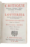 Critique historique, politique, morale, économique et comique sur les lotteries, anciennes et modernes, spirituelles et temporelles, des États et des Églises. Vol. 1 (of 2).