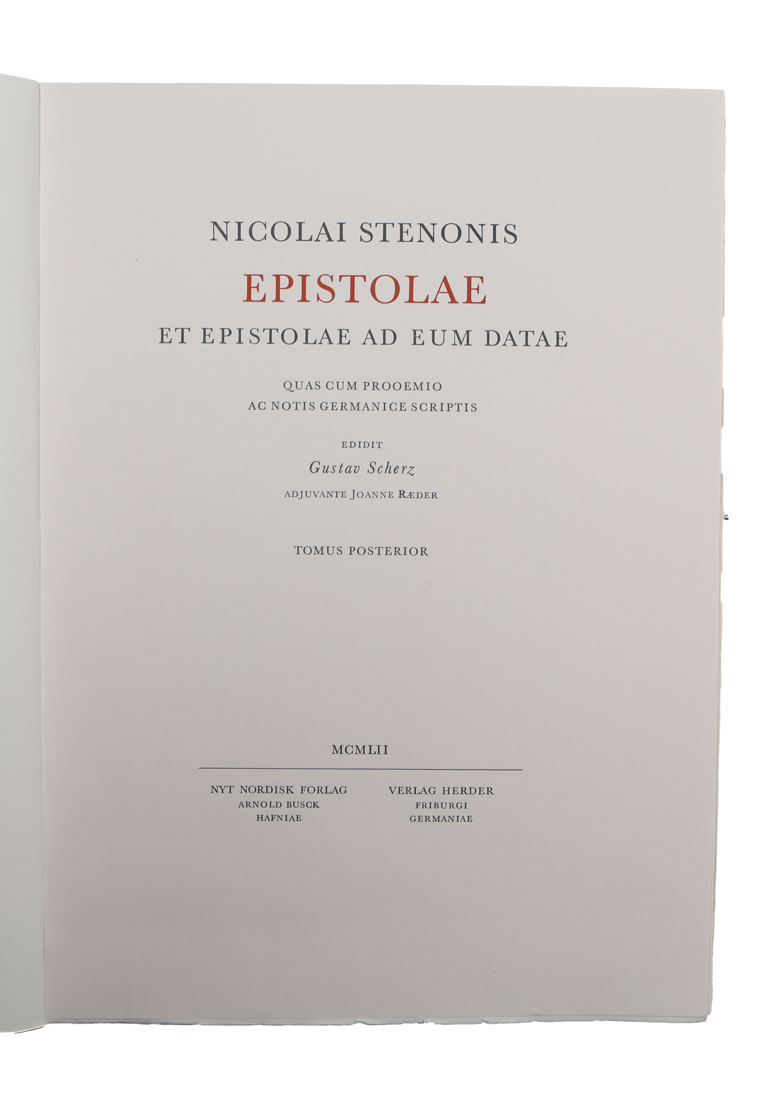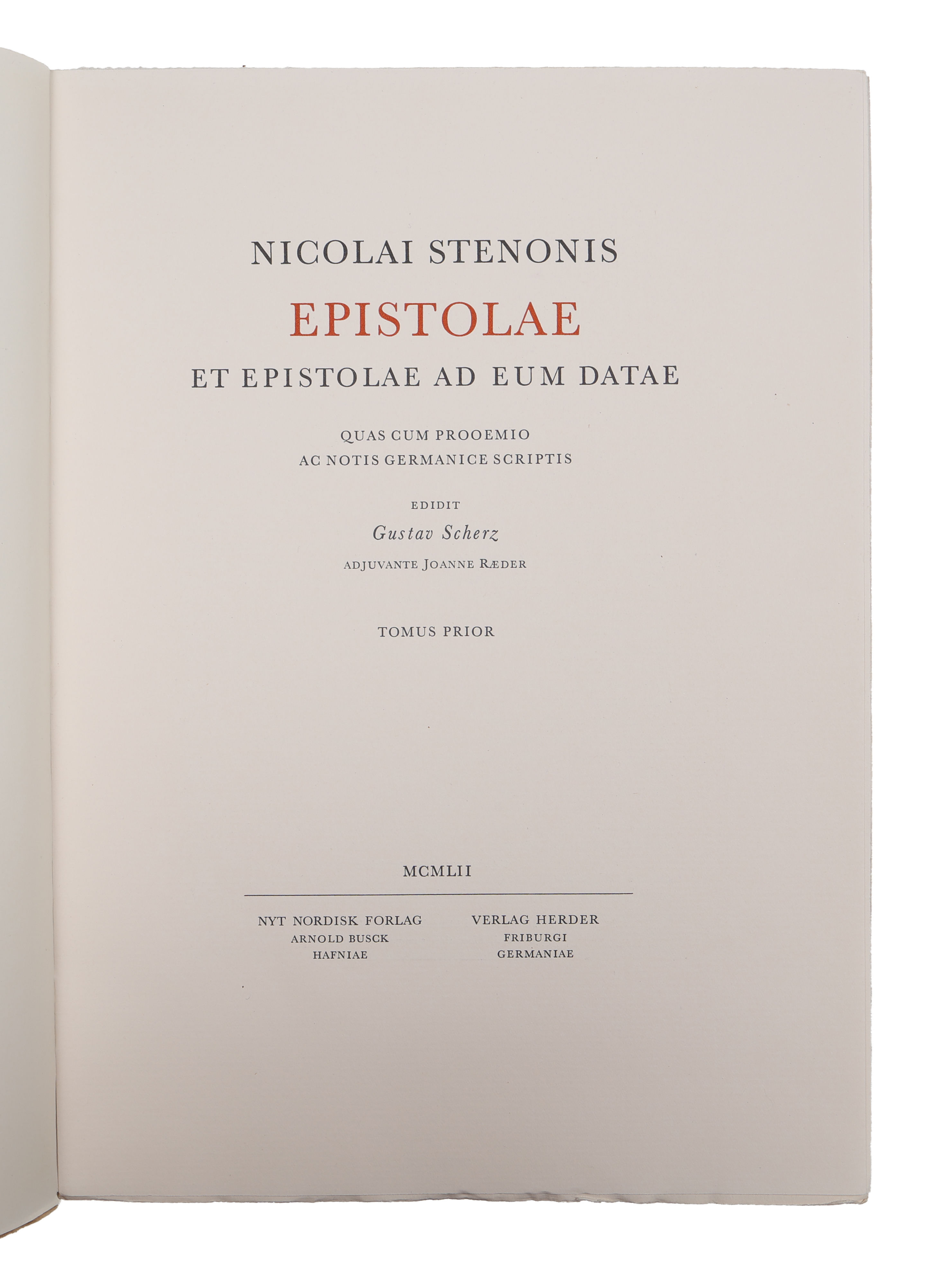 First and only edition of Gustav Scherz's monumental work with Steno's collected works. No. 14 out of 500 copies.