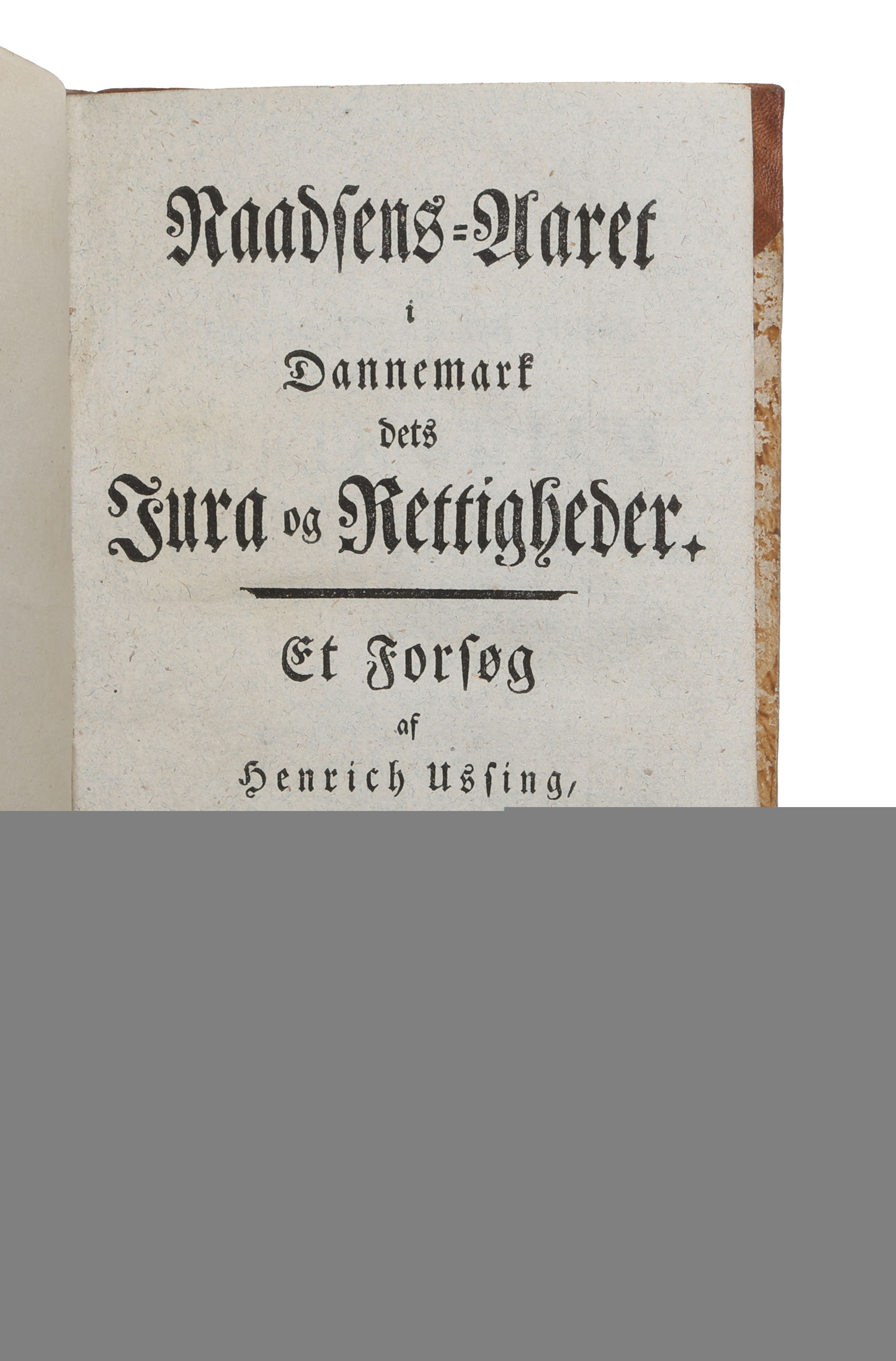 The rare first edition of Ussing's precursor to his seminal "Kirkeforfatningen i de kongelige danske Stater" (1786-89)
