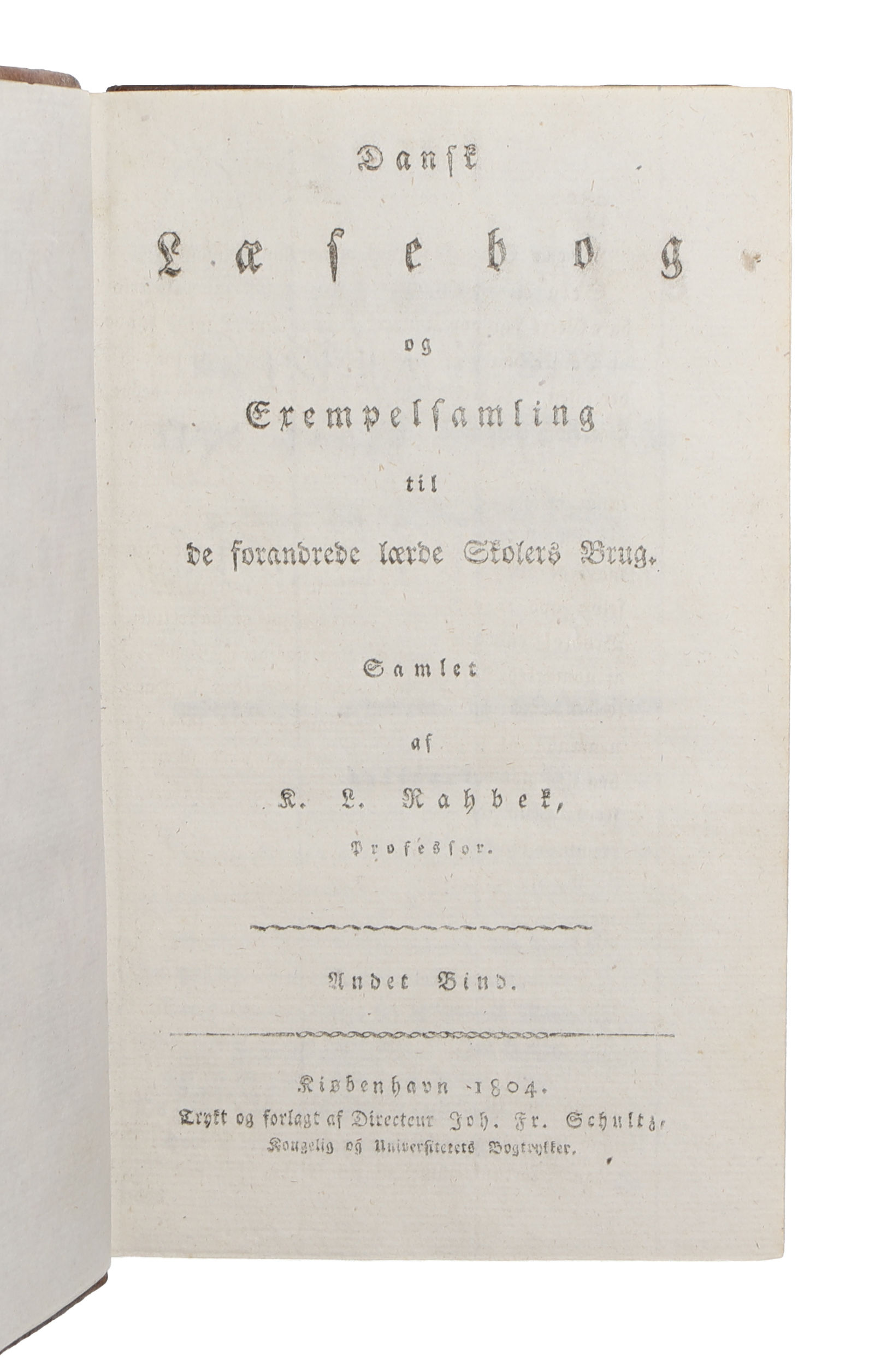 Dansk Læsebog og Exempelsamling til de forandrede lærde Skolers Brug. 2 vols.